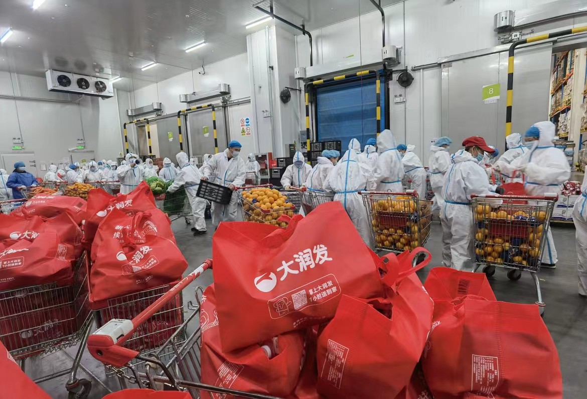 在大润发上海华漕店,被分拣打包好的商品正在等待配送。受访对象供图
