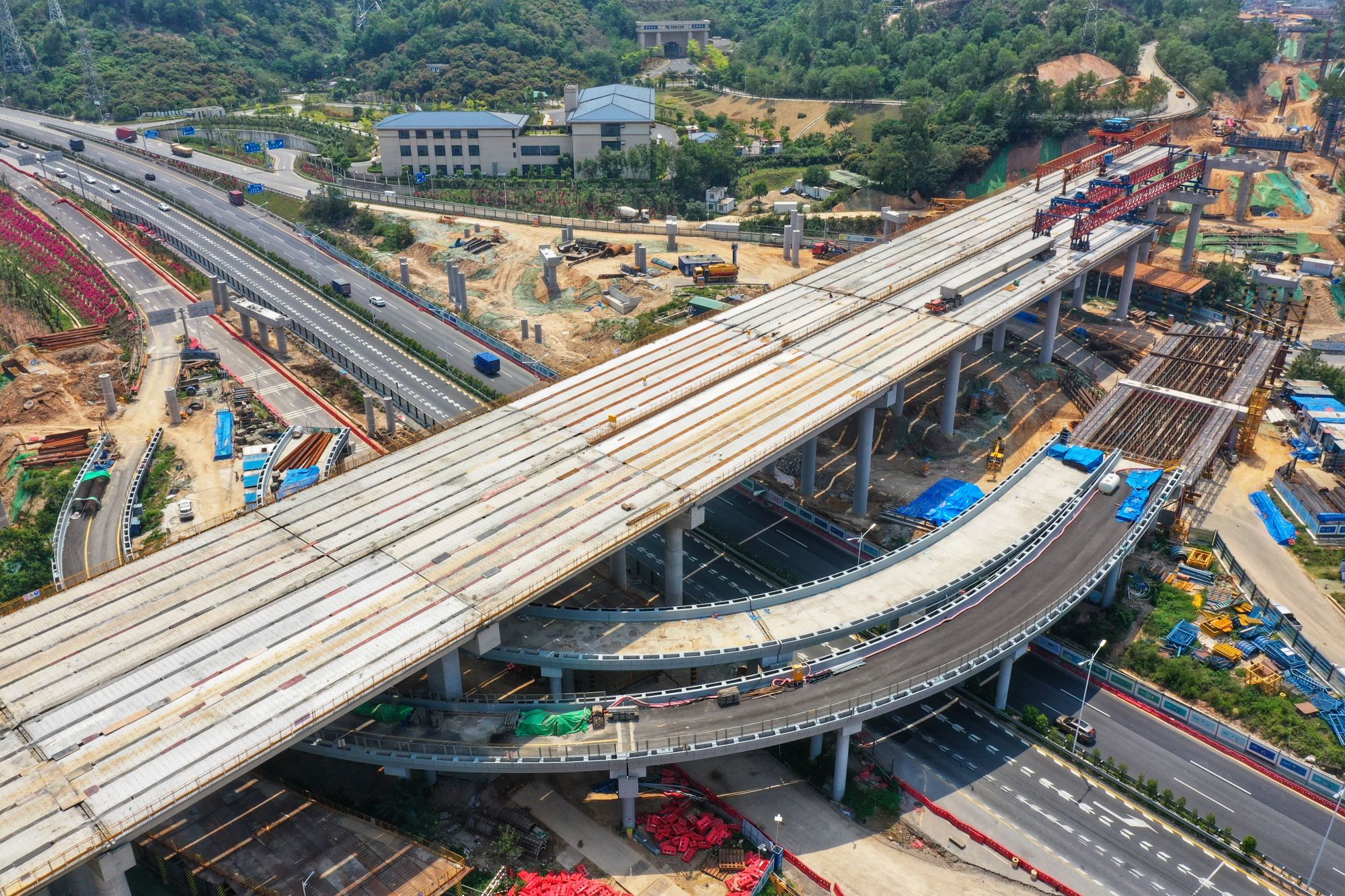 深圳东部过境高速架梁施工进展顺利。新华社记者 刘大伟 摄
