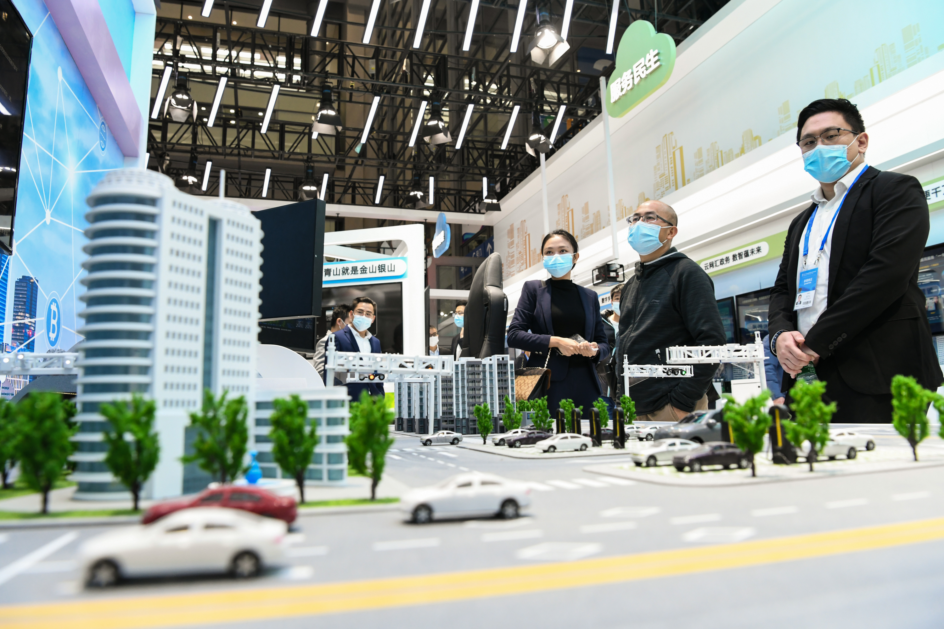 在深圳举行的第二十三届中国国际高新技术成果交易会智慧城市展区,观众了解华为智能网联。新华社记者 梁旭 摄