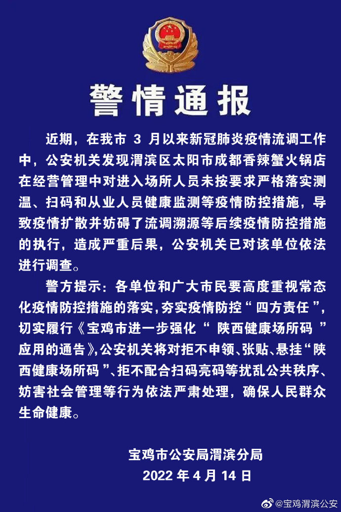 宝鸡一火锅店致疫情扩散并妨碍流调溯源,被查!