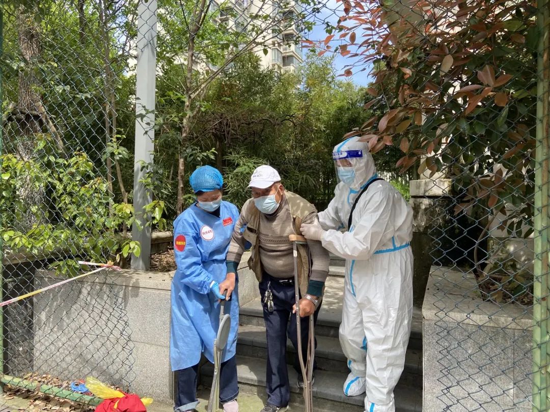 等老人做完核酸又搀扶着送了一程。