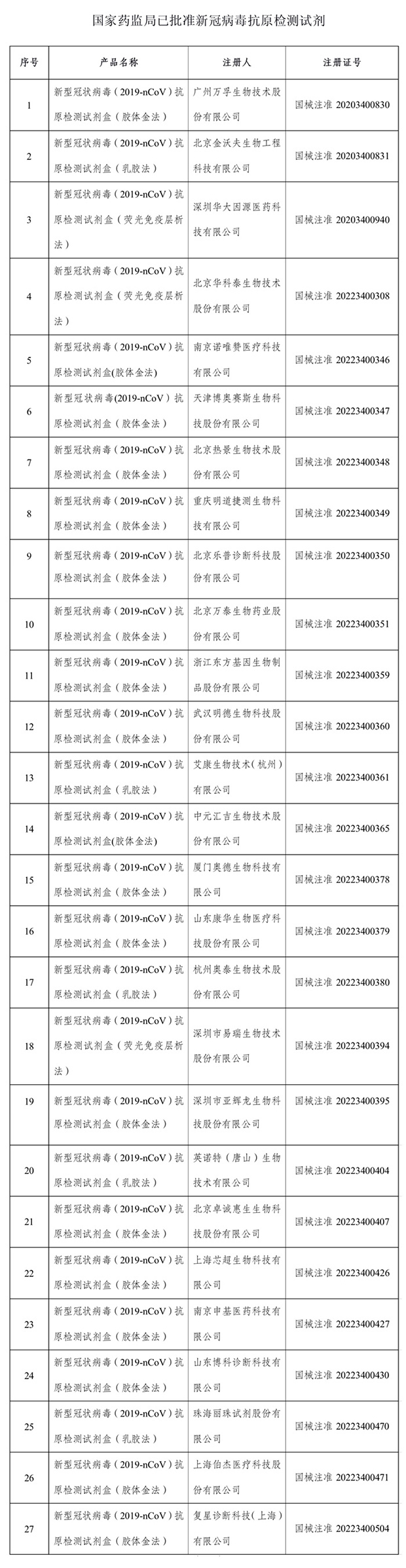 3月23日,国家药监局批准2家新冠病毒抗原产品的注册申请,分别为深圳易瑞生物、深圳亚辉龙生物。