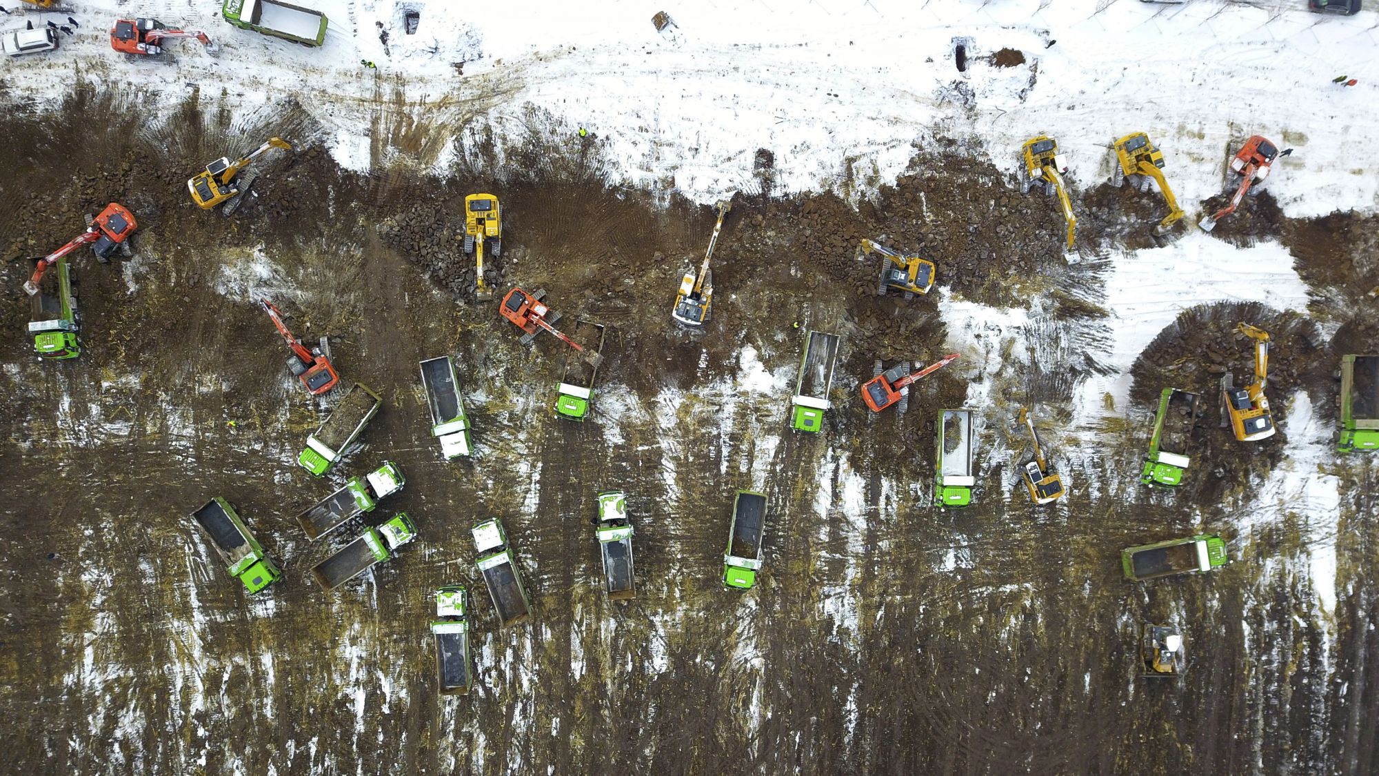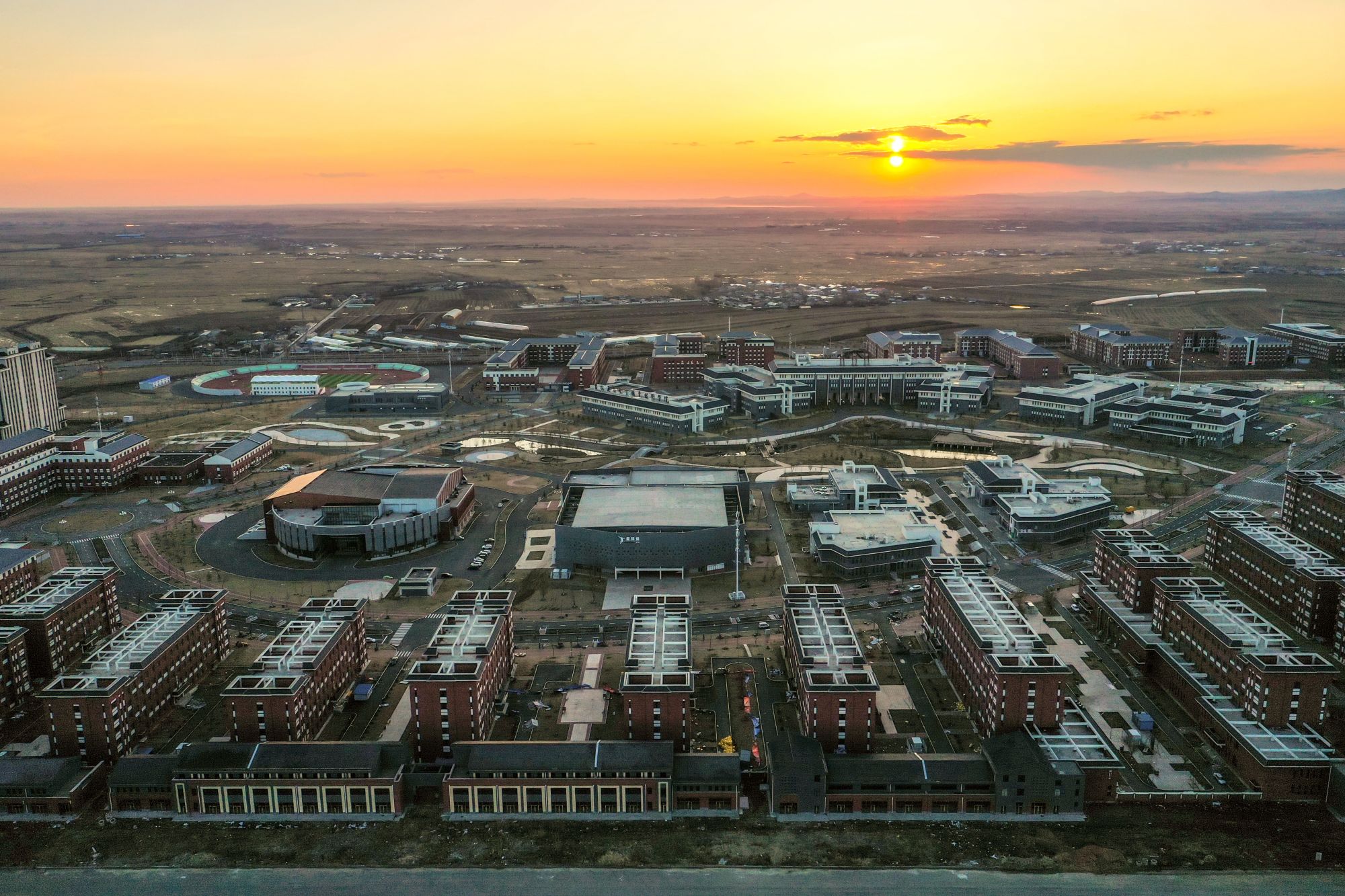 工人在进行吉林省长春市兴隆山保税区方舱隔离点一期施工建设(3月16日摄,无人机照片)。新华社发
