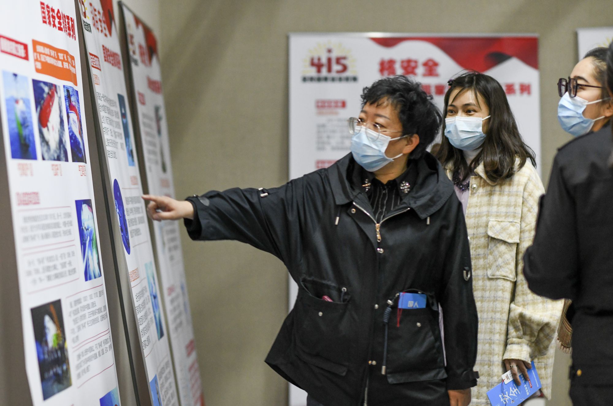 4月14日,在乌鲁木齐市美术馆,市民参观由乌鲁木齐市国家安全局主办的全民国家安全教育日普法宣传展览。新华社记者 王菲 摄