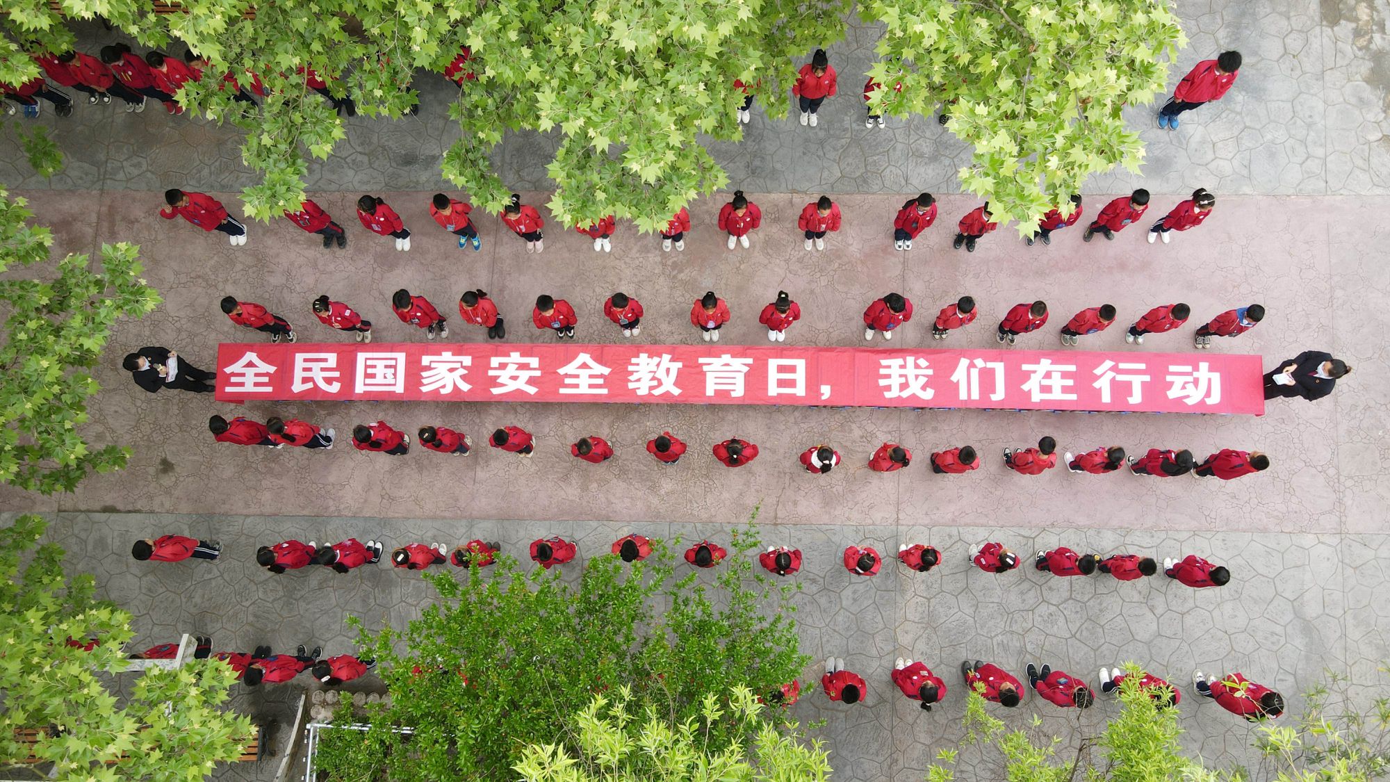 4月14日,检察干警与学生一起在贵州省黔东南苗族侗族自治州黄平县旧州第二小学开展国家安全教育“大手牵小手”主题活动(无人机照片)。新华社发(梁文 摄)