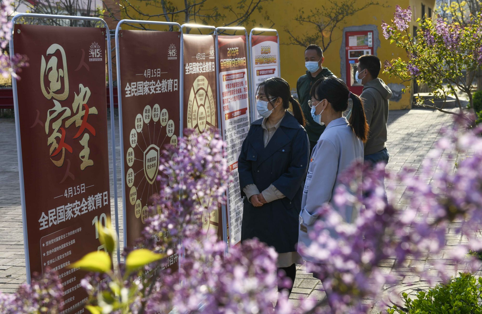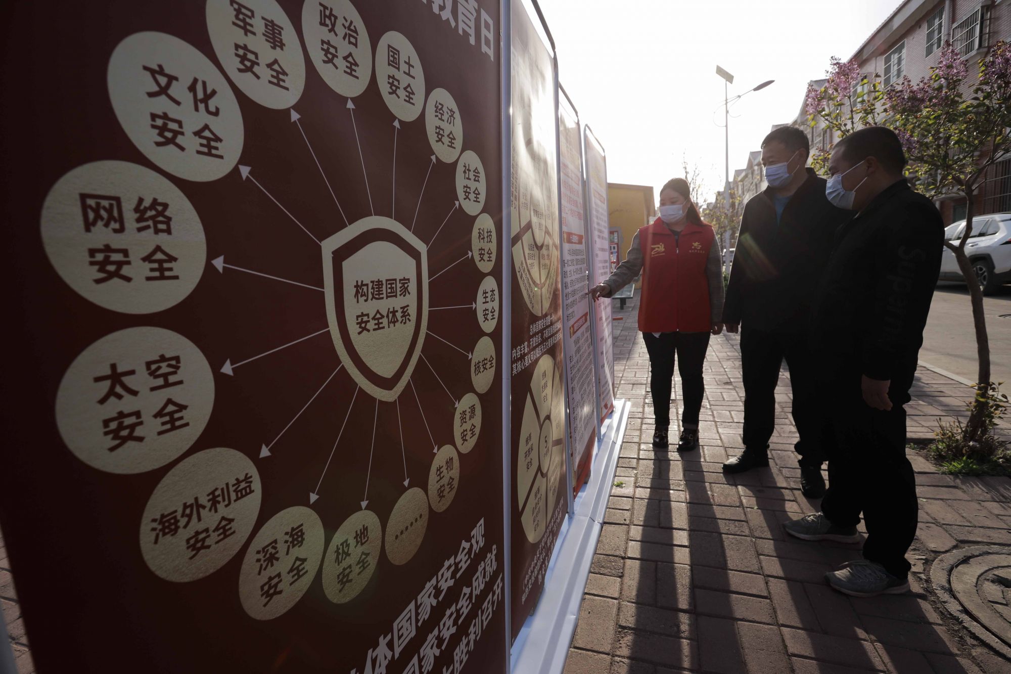 4月14日,居民在河北省遵化市西三里镇一社区观看国家安全相关知识展览。新华社发(刘满仓 摄)