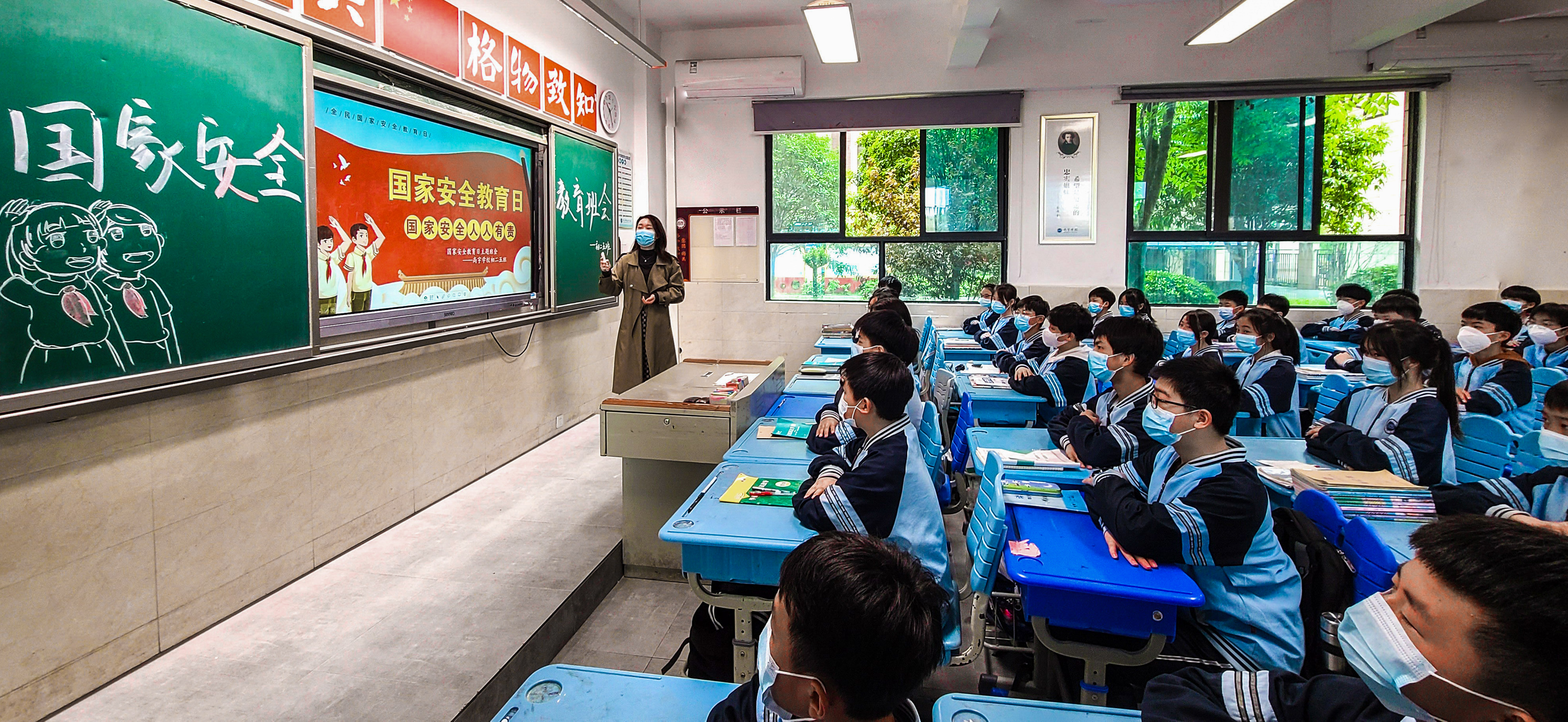 4月14日,在湖南省衡阳市常宁市尚宇学校,老师向学生讲解国家安全知识。新华社发(周秀鱼春 摄)