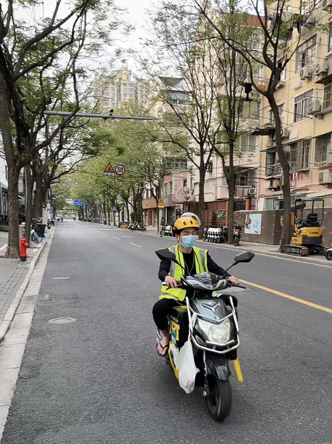 第二天,我成了一名外卖小哥,骑着电瓶车,行驶在上海的街头。