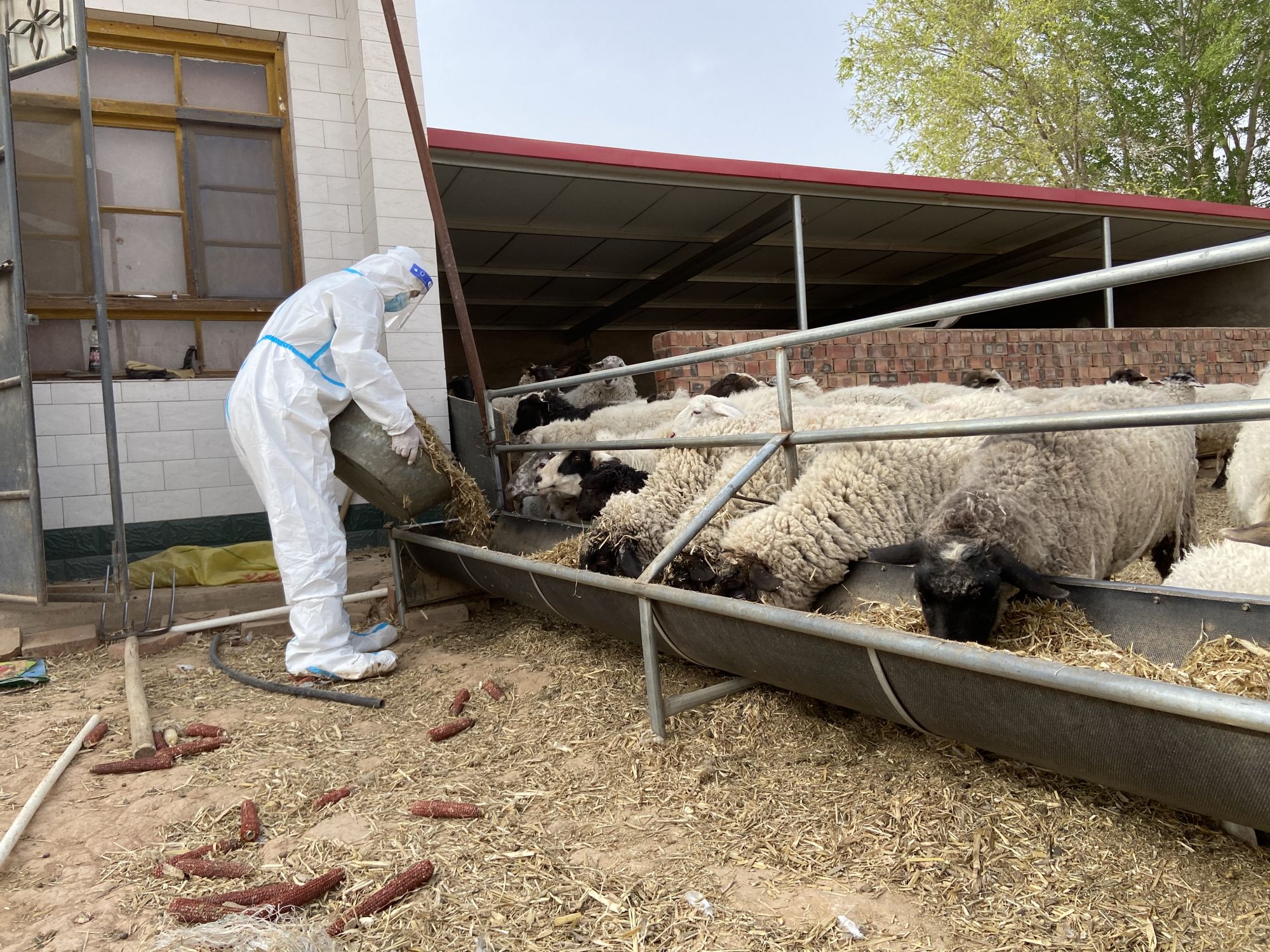 疫情防控以来,李翔等村干部和志愿者经常从清早忙到深夜。饲喂牛羊时,李翔和两名志愿者要对牛棚羊圈进行消毒,随后各司其职给牛羊拌料添草。李翔说,防护服不透气,一些村民家还需从水窖提水,一出汗很不舒服,干活时也得小心翼翼避免把防护服刮破,平时一个多小时就能干完的活现在得两个多小时。