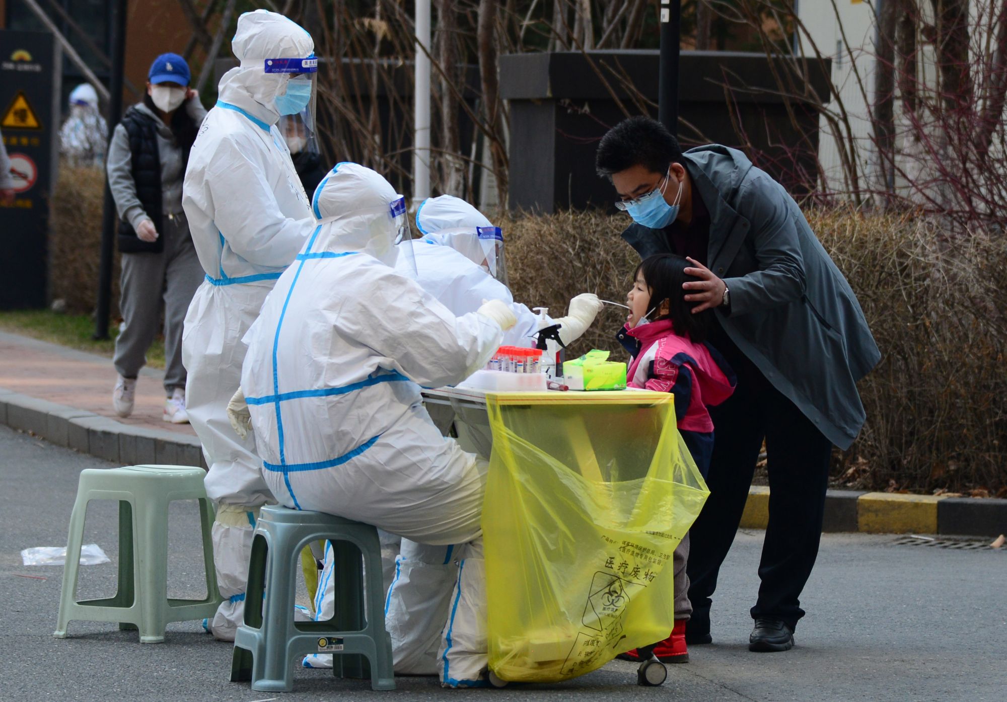 4月14日,在长春市南关区一处核酸检测点,居民接受核酸检测采样。新华社记者张建摄