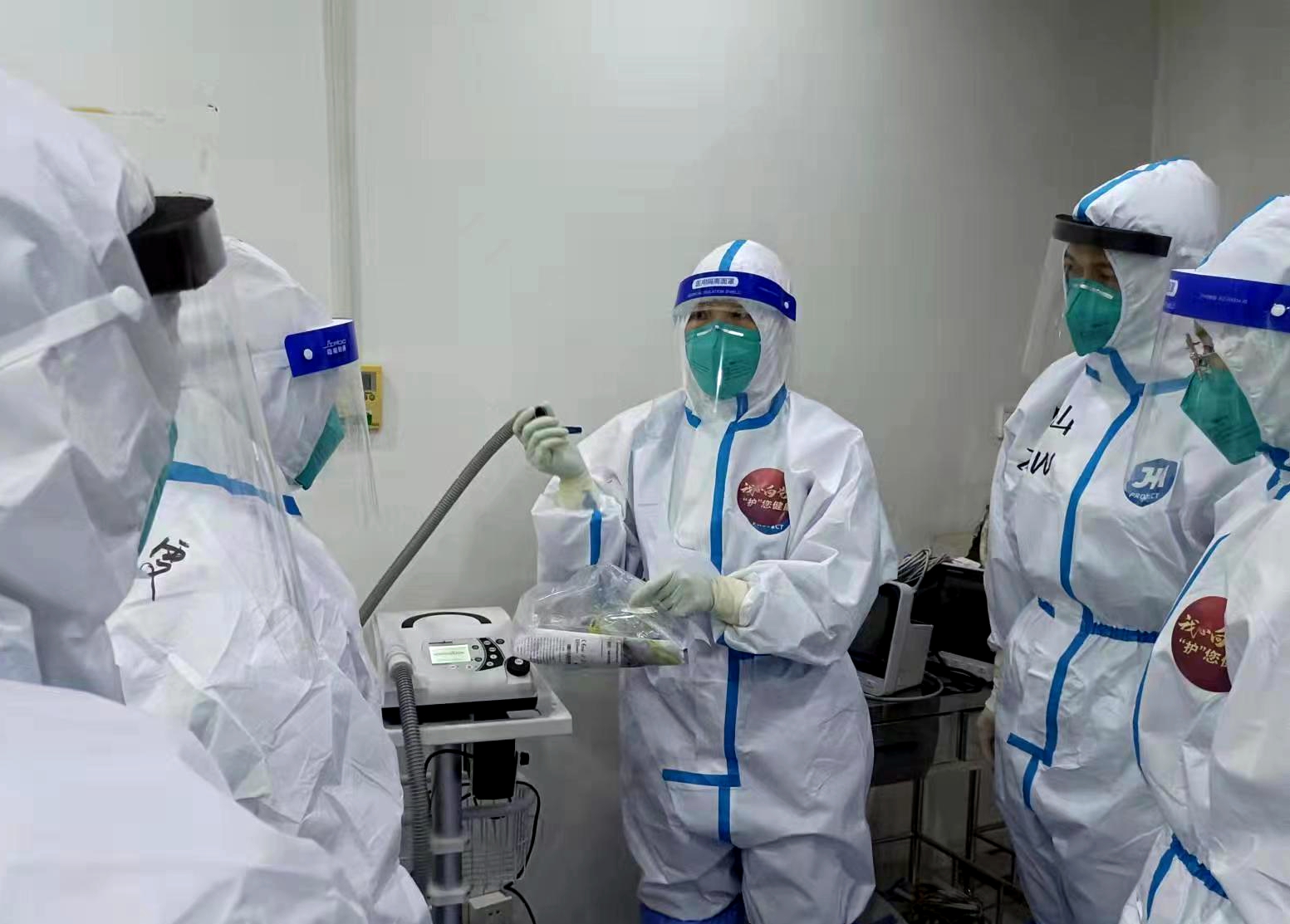 3月29日,她遇到一个病人紧急呼救:恶心、胸闷、喘不过气来。她和小伙伴们立即奔赴过去,测体温,测血氧,测心率,测血压,接上氧气,向医疗组汇报患者情况。原来,这位病人担心生活不能自理的父亲住在医院的情况,加之运动量减少,本来就有点胃部毛病,用药后产生了不适应。