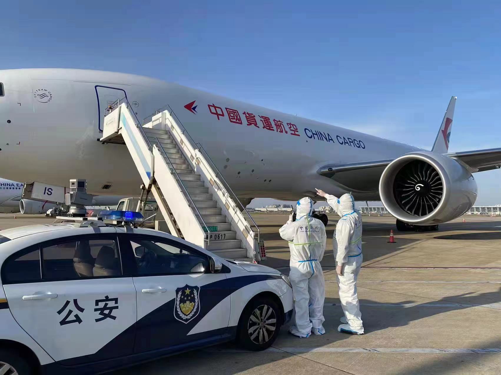 4月11日19时,载有医疗配件、连接器、阀门配件等医疗物资的CK228航班缓缓驶抵浦东机场328号停机坪。而在飞机抵达前,航班代理人员已通过边检机关提供的“单一窗口边检航空器申报平台”完成了货机人员载运情况、航班抵离情况等信息申报工作。待飞机停靠后,边检民警快速登机,人证对照、非接触式清舱检查……不到10分钟便完成了该航班的边检手续非接触办理。