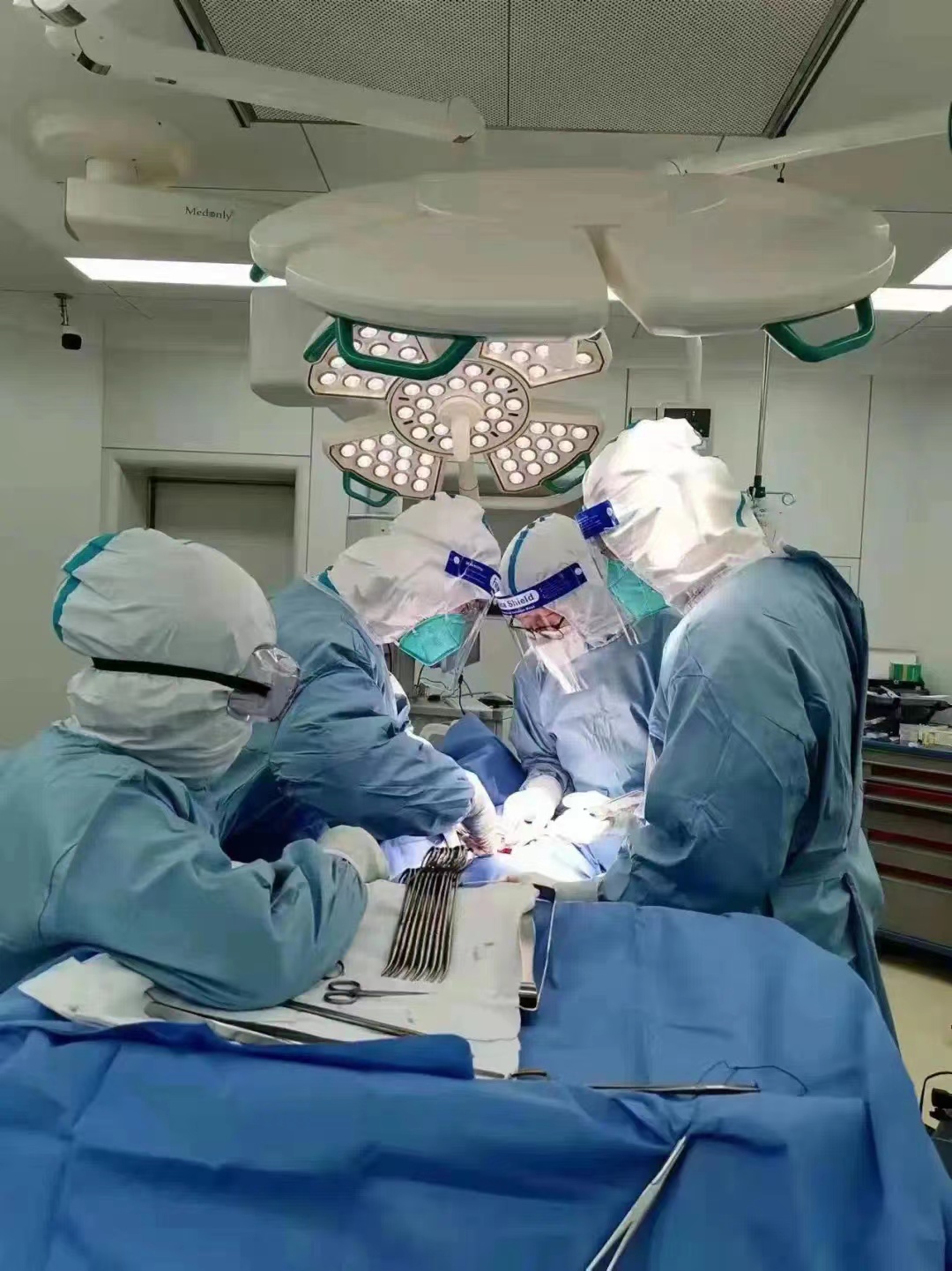 吉林大学中日联谊医院北湖院区医护人员在为隔离管控区急症患者进行急诊手术。(图片由被采访对象提供)