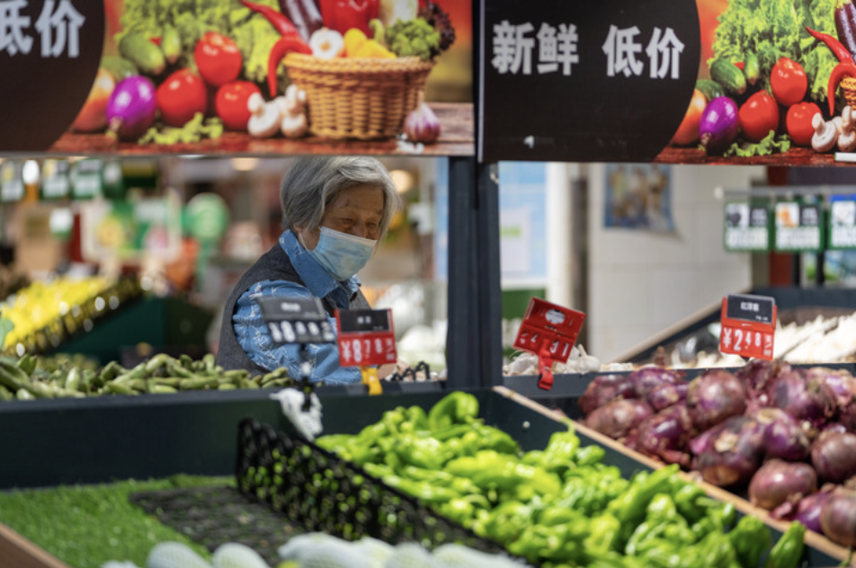 4月11日,消费者在南京市一家超市内选购蔬菜。 新华社发(杜懿摄)