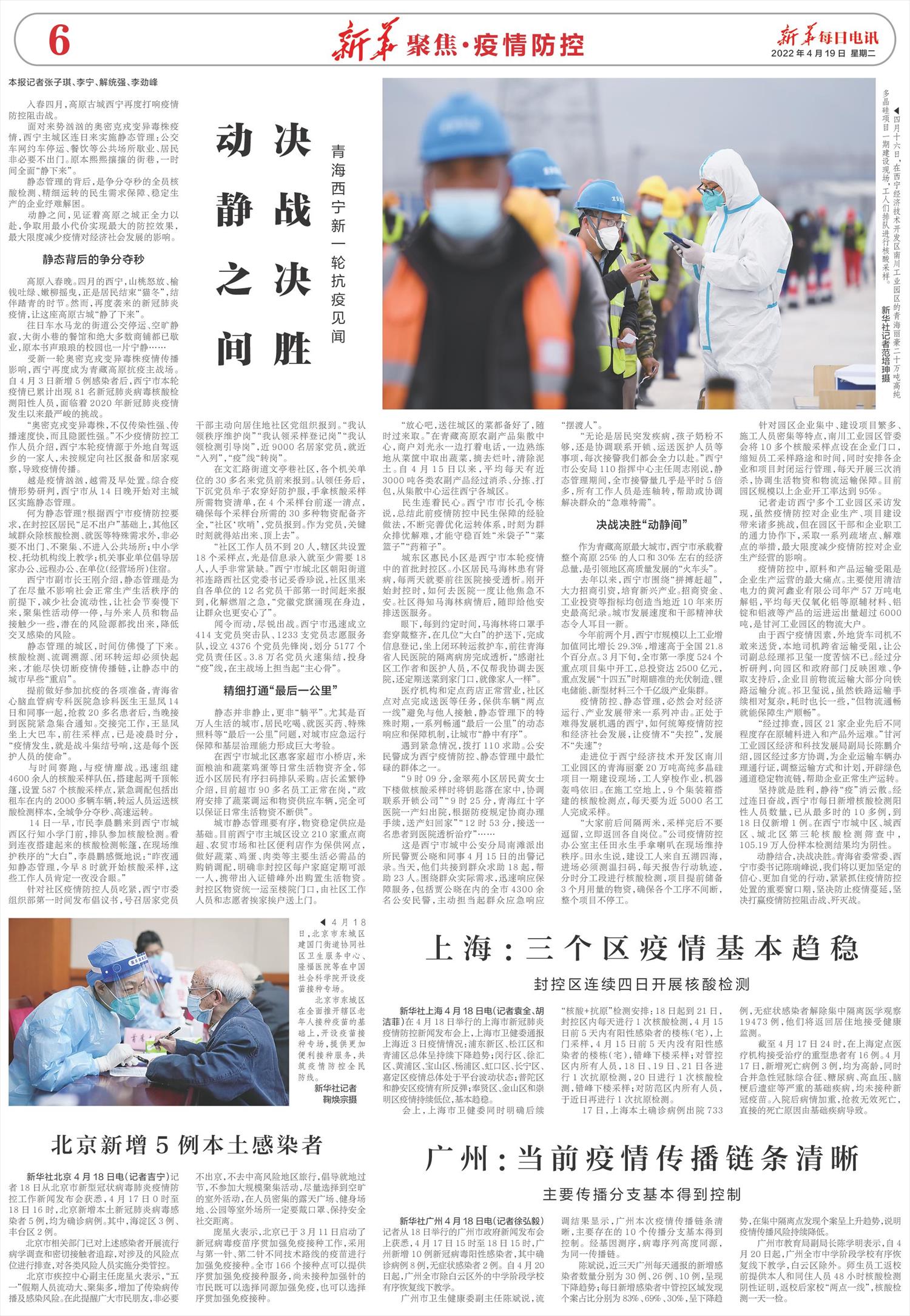 动静结合,决战决胜。青海省委常委、西宁市委书记陈瑞峰说,我们将以更加坚定的信心、更加自觉的行动,紧紧抓住疫情防控处置的重要窗口期,坚决防止疫情蔓延,坚决打赢疫情防控阻击战、歼灭战。