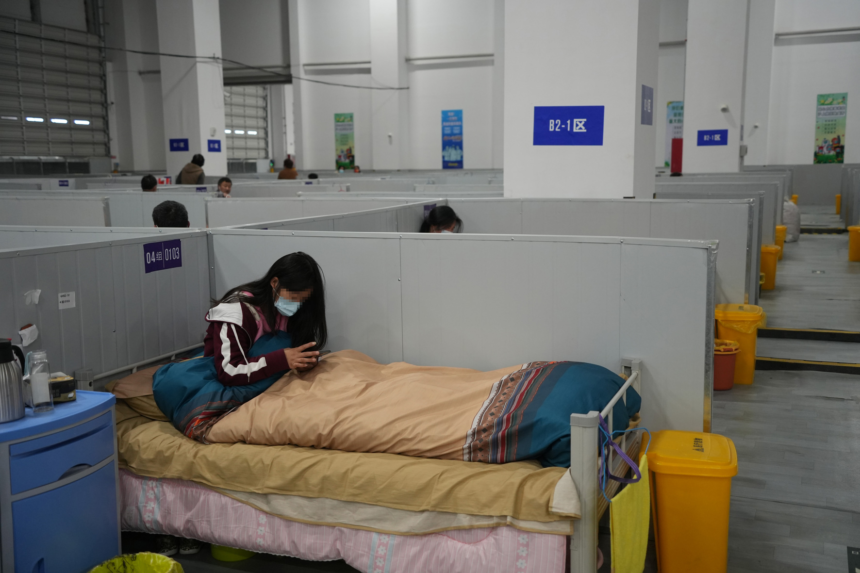 4月16日,患者在上海临港方舱医院里休息。新华每日电讯记者杨有宗摄