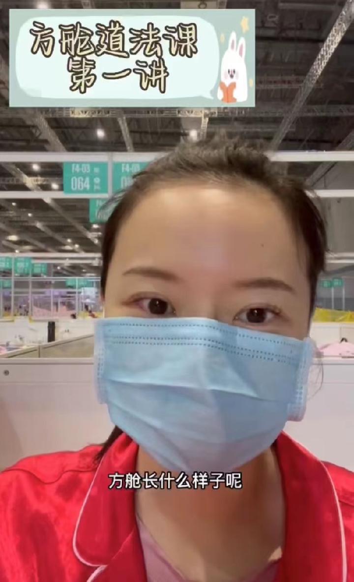“大家早上好,现在是早上7点,大家是不是很好奇方舱长什么样子呢?那就跟着陈妈的镜头一起去看看吧……”