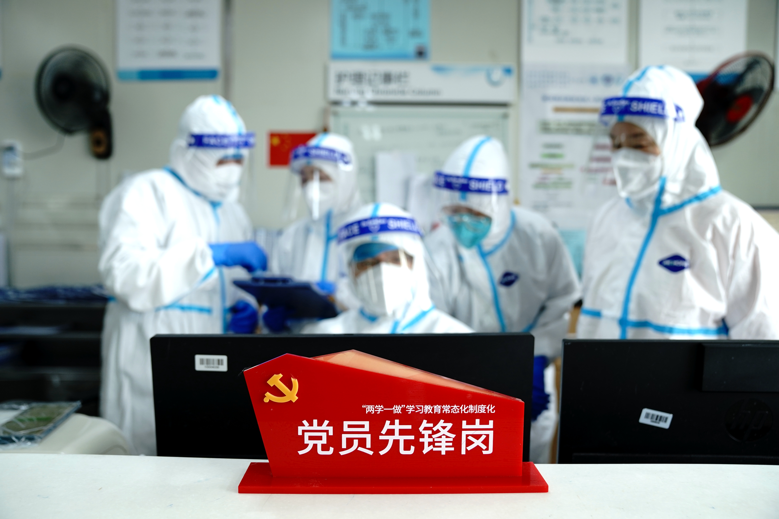 记者注意到,在急诊抢救室的接待台上,红色的“党员先锋岗”标志分外醒目。