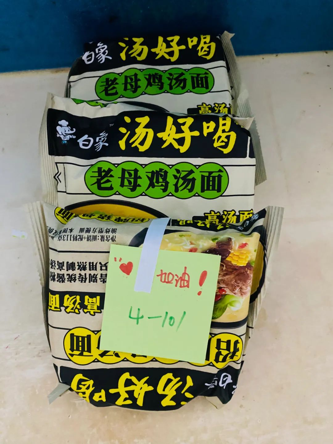 “居民会和我们分享一些蔬菜,有时做好了菜让志愿者送过来。还有些居民捐赠了单人床和床垫,解了我们的燃眉之急。”
