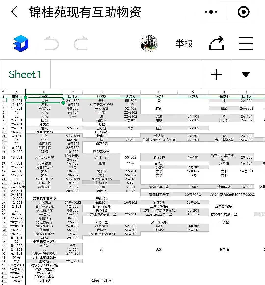 “起初看到业主群里有人提议共享食物,很多居民积极响应,我就想到做一个线上表格,将大家的供求关系对接上。”