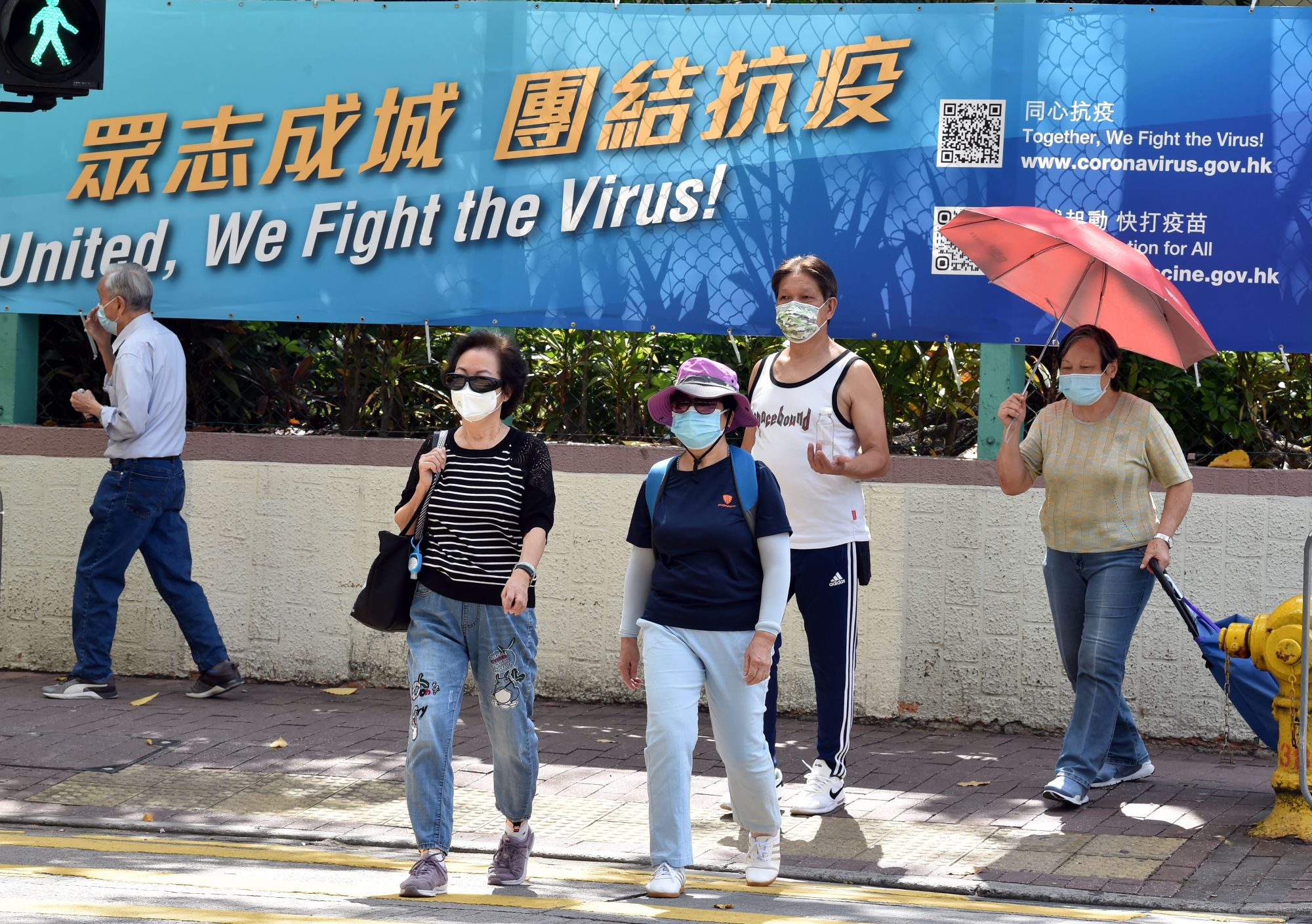 4月12日,在香港长沙湾,市民佩戴口罩出行。新华社记者卢炳辉摄