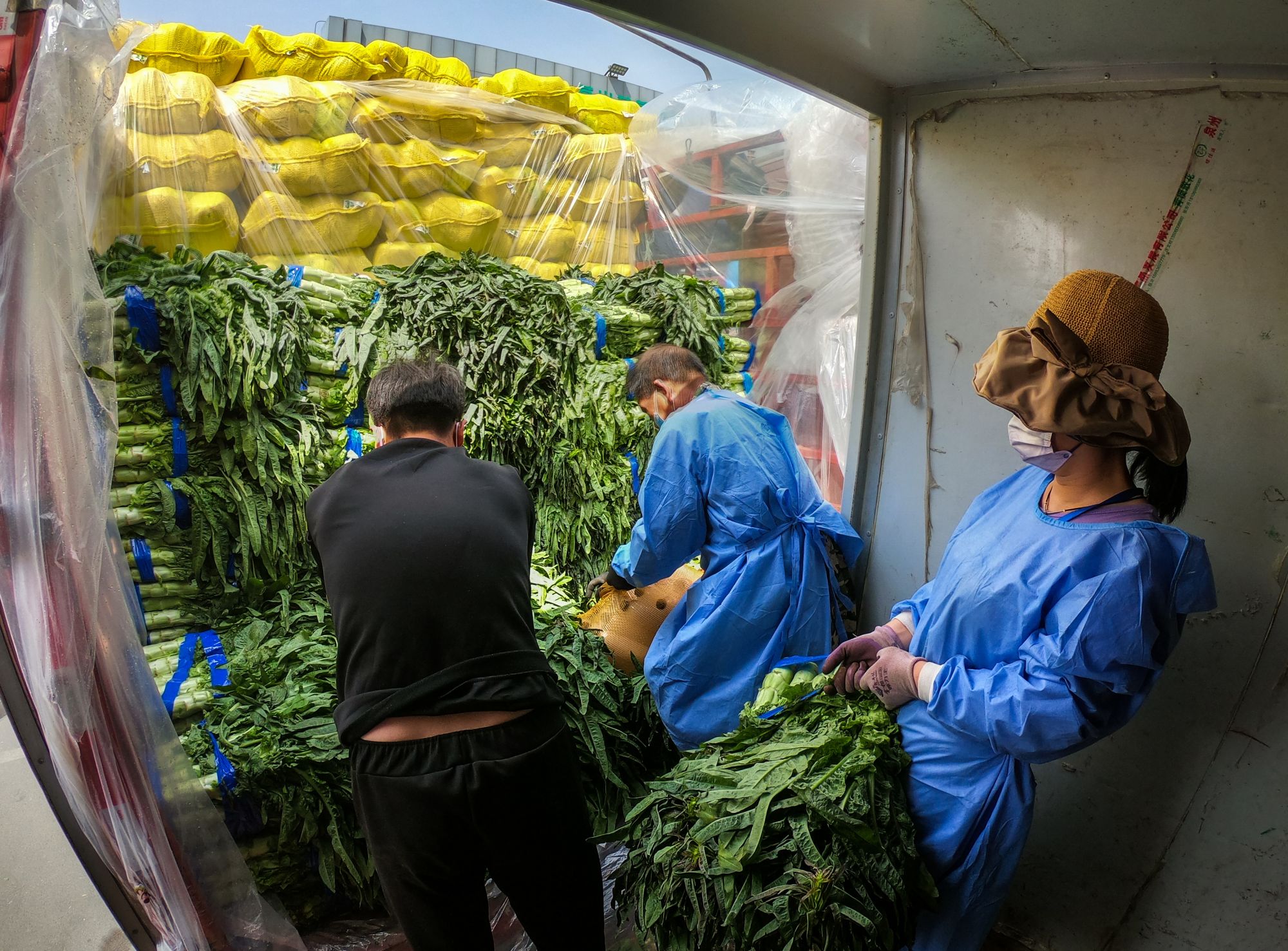 “我们主要是把老家的蔬菜平价批发给美菜商城、叮咚、菜划算这些电商平台,供应给整个上海市。”分销商负责人吴路告诉记者,之前因为运输不通畅等原因,一直没办法把菜从兰陵运过来。