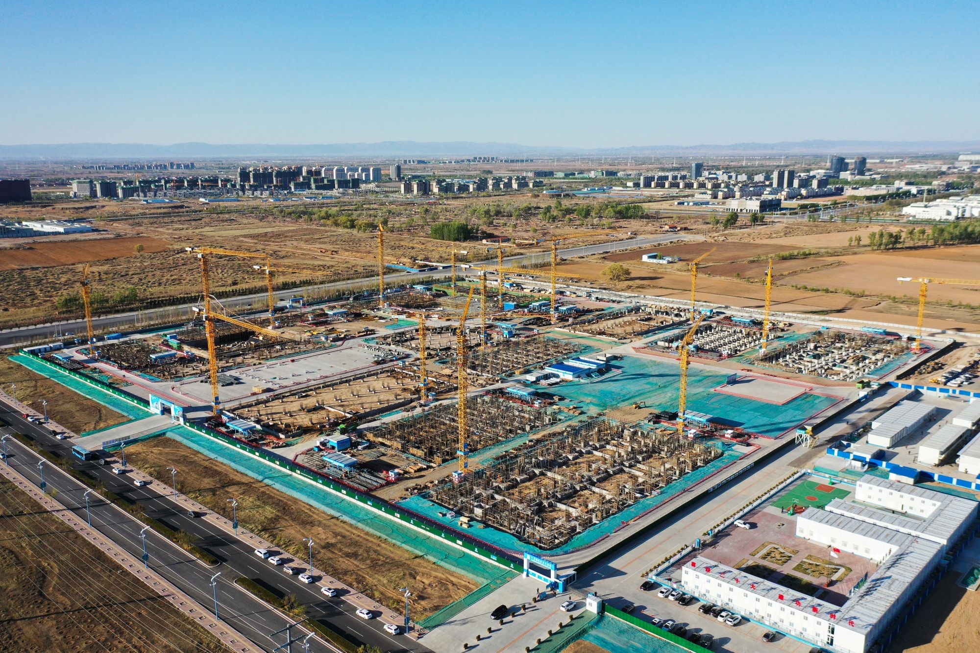 ↑这是4月30日在内蒙古和林格尔新区拍摄的中国银行总行金融科技中心项目工地(无人机照片)。新华社记者 刘磊 摄