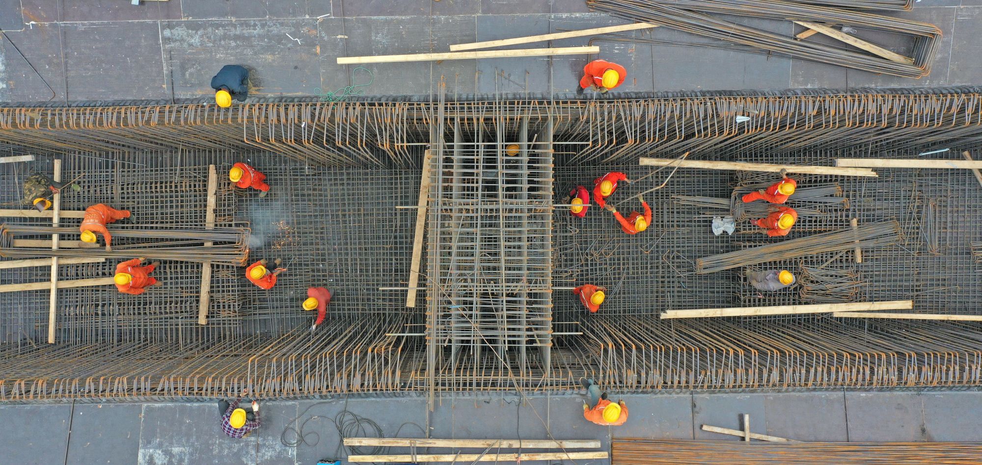 ↑4月30日,在位于河南省郑州市的中原数字产业园(西园)项目工地上,工人在进行电焊作业。新华社记者 李嘉南 摄