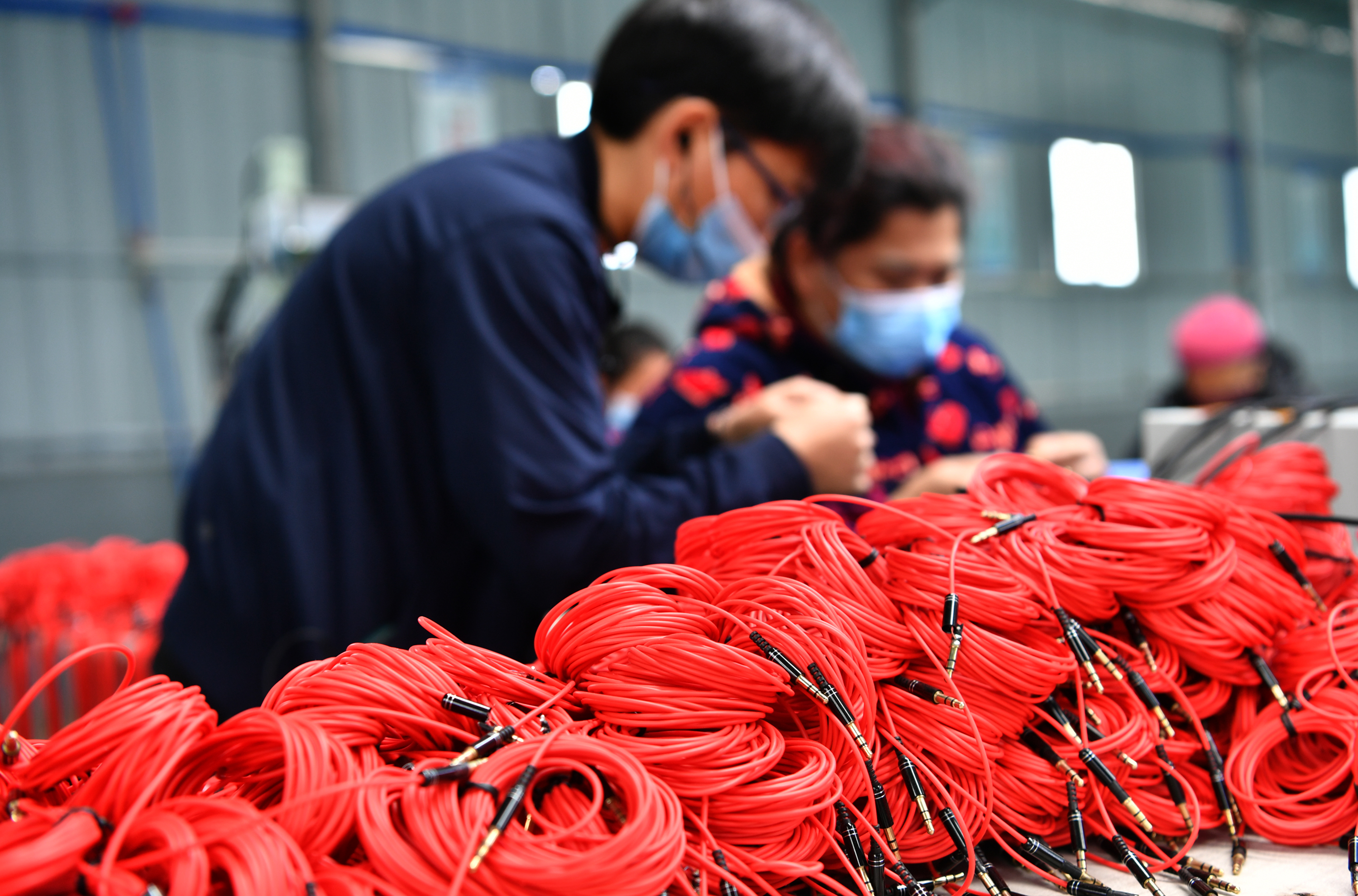 ↑4月30日,在湖南省湘西土家族苗族自治州花垣县龙潭镇易地扶贫安置区电子加工厂,工人忙着加工电子产品。新华社发(龙恩泽 摄)