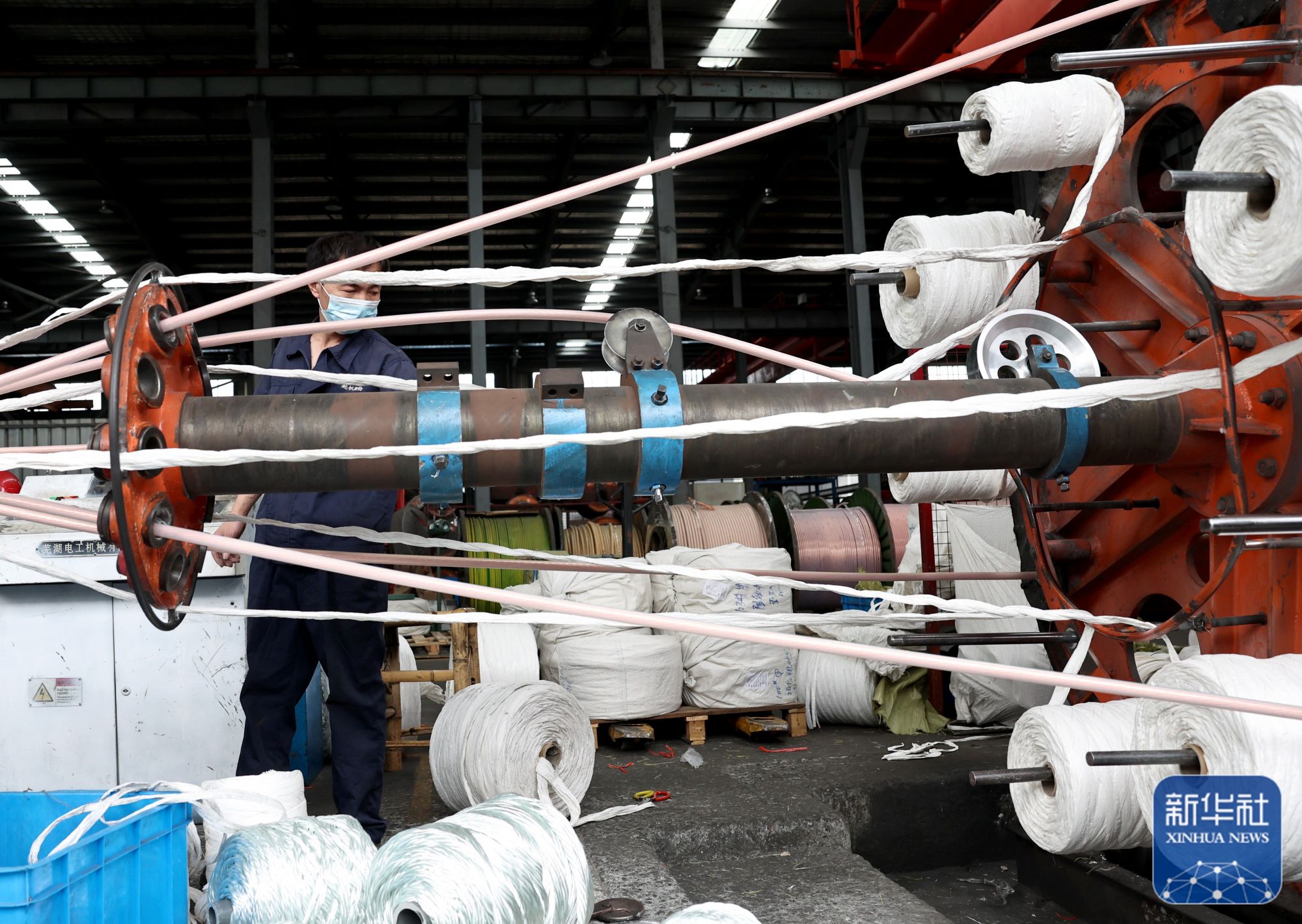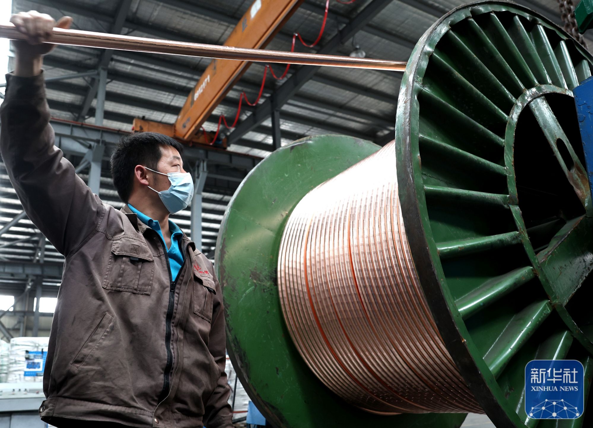 5月1日,工人在上海市金山区张堰镇上海起帆电缆股份有限公司电缆生产线上工作。该公司通过实施闭环管理等措施,开足马力生产各类电缆,力保重大工程不断货。