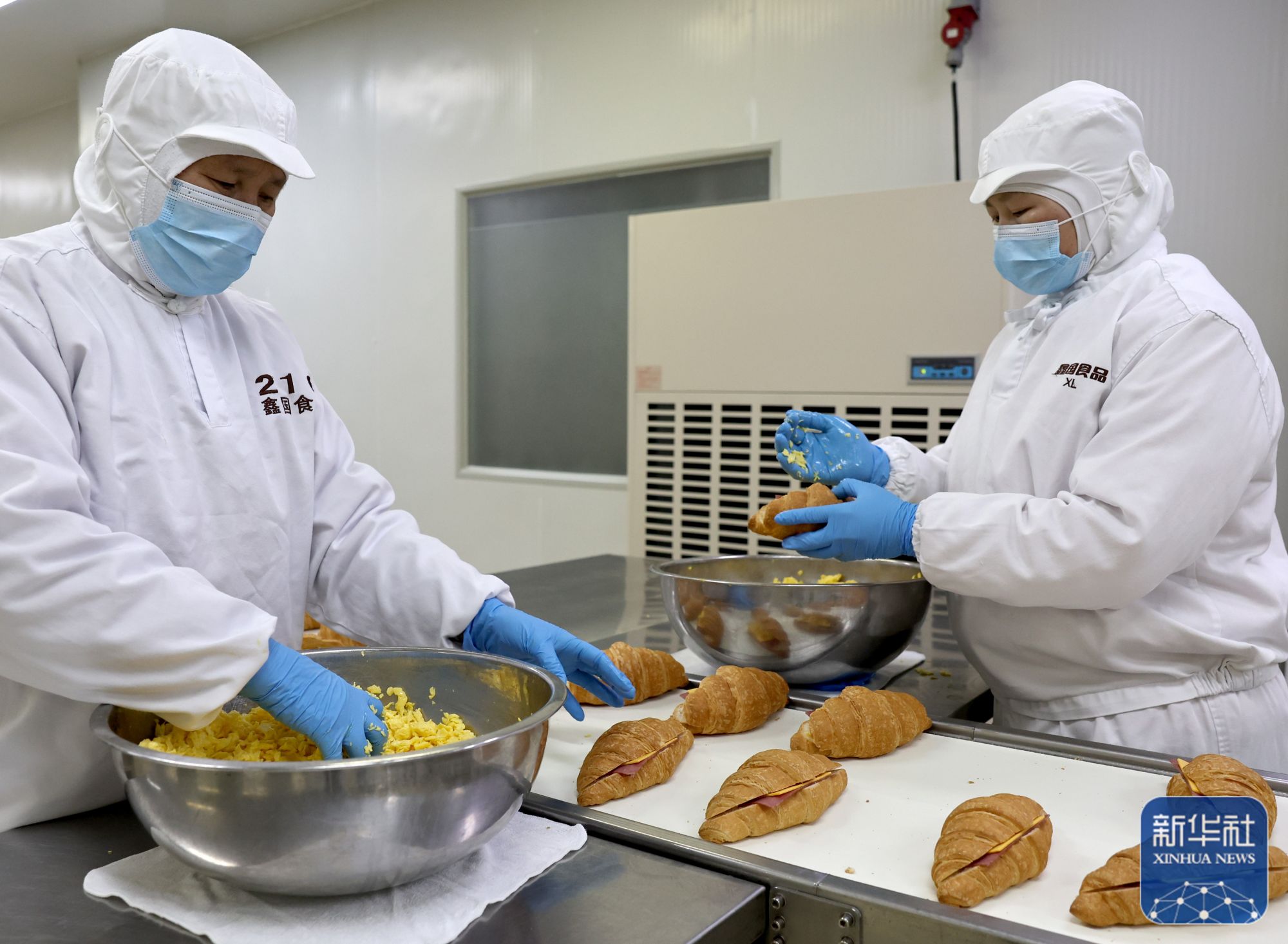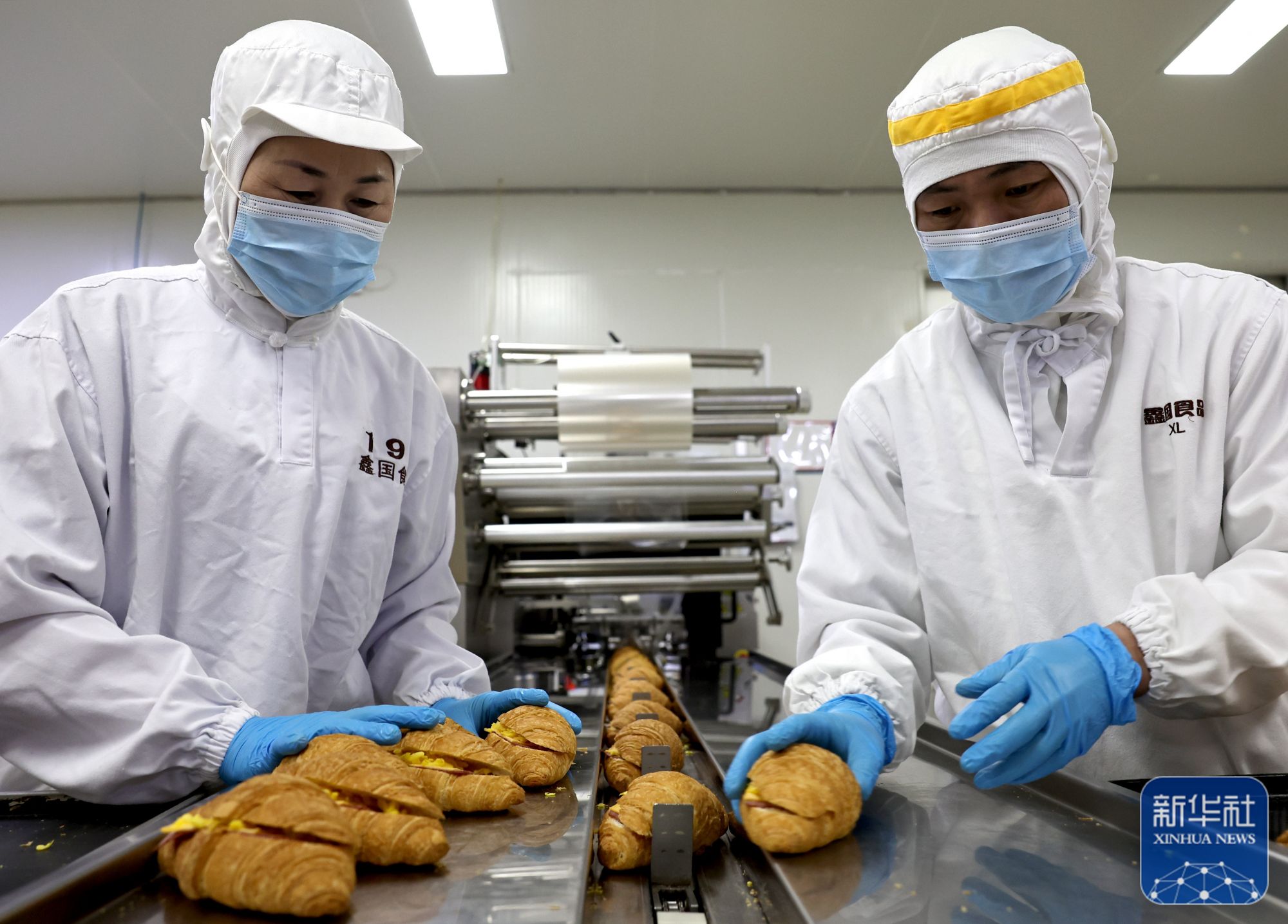 5月1日,工人在上海市金山区朱泾镇上海鑫国食品有限公司烘焙生产线上工作。该公司作为保供企业,面对巨大市场需求,将质量安全放在首位,实施闭环管理,开足马力生产各类烘焙食品。