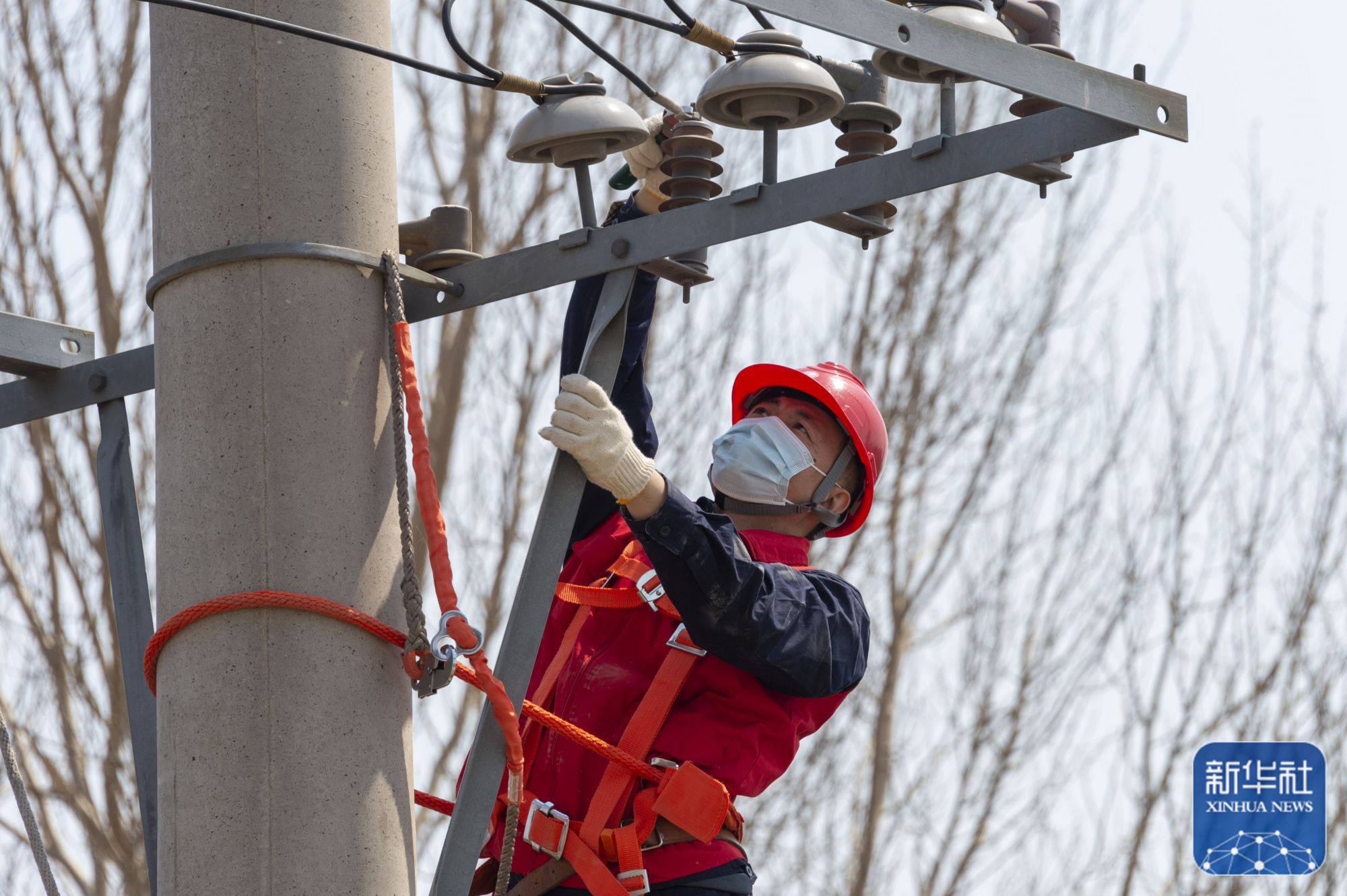 4月29日,在哈尔滨市松北区,国家电网黑龙江电力(李庆长)共产党员服务队队员在检修路灯。新华社记者 谢剑飞 摄