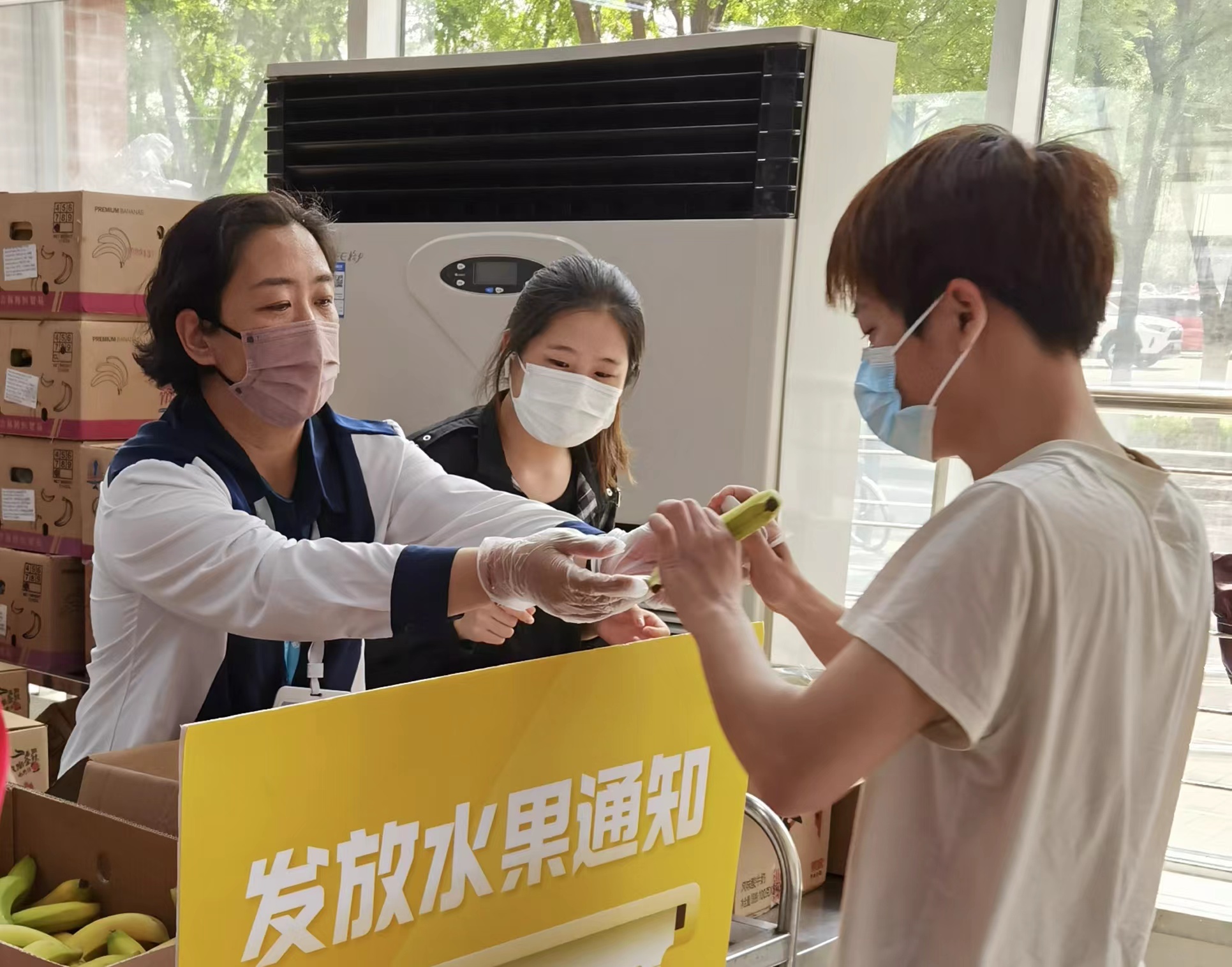 面对疫情,学校组织校内师生志愿者筑起了防疫战斗堡垒,赵正艳也加入了志愿者队伍。早上她在校内核酸检测点引导扫码,中午在食堂为学生发放水果,下午在校门口值守,晚上再到宿舍给学生们发放口罩。