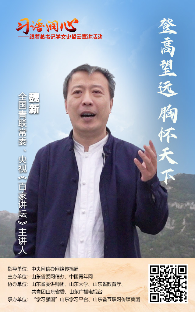 为喜迎党的二十大胜利召开,推动党史学习教育常态化长效化,激发广大网民特别是青年群体深刻理解“两个确立”的决定性意义,增强“两个维护”的自觉性、坚定性,5月9日,在习近平总书记给《文史哲》编辑部全体编辑人员回信一周年之际,“习语润心——跟着总书记学文史哲”云宣讲活动正式启动。活动由中央网信办网络传播局指导,山东省委网信办、中国青年网主办,山东省委讲师团、山东大学、山东省教育厅、共青团山东省委、山东广播电视台协办,“学习强国”山东学习平台、山东省互联网传媒集团承办。今天,让我们跟随全国青联常委、央视《百家讲坛》主讲人魏新的脚步登高望远,讲述新时代泰山“挑山工”精神。