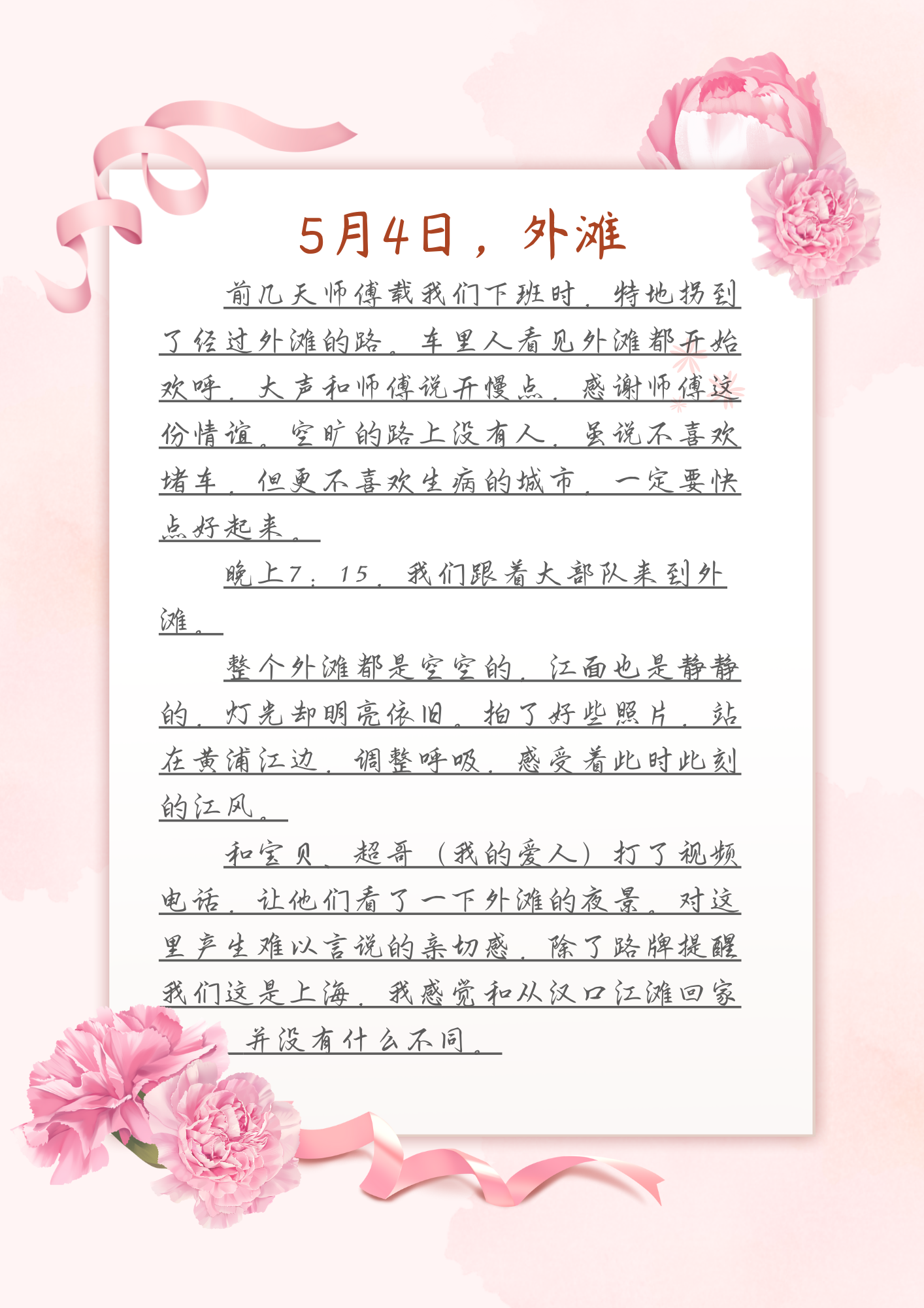 4月3日,作为金银潭医院援沪医疗队的领队,程芳踏上了开往上海的专列,至今,她已经在一线奋战将近四十天。连日来,她记录下了援沪每一天的经历与感动,以下是她的日记节选……