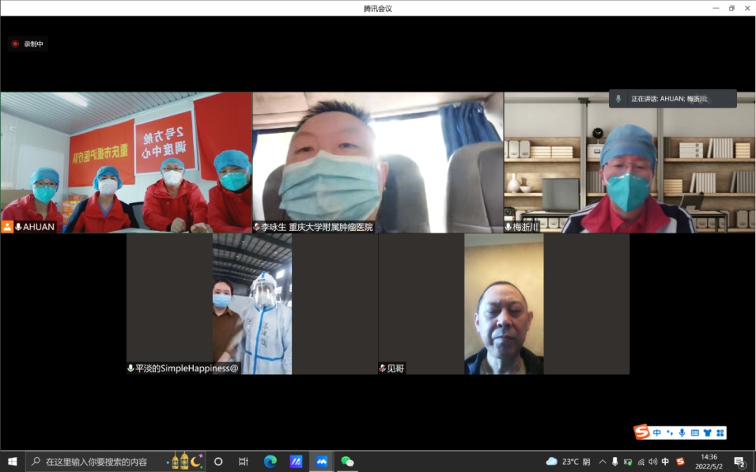 5月2日,松江区2号方舱医院,重庆市援沪医疗队正连线后方医院专家为患者线上会诊。