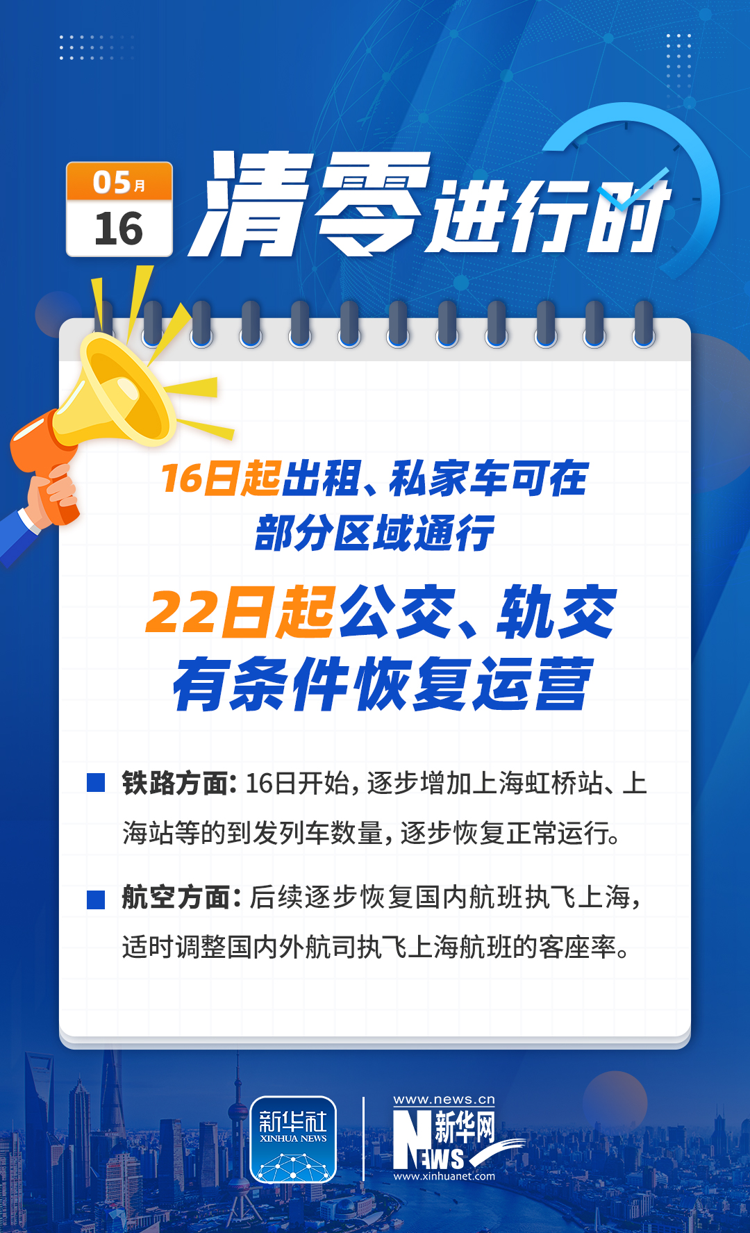 记者从16日举行的上海市疫情防控工作新闻发布会上获悉,目前上海已有15个区实现社会面清零,封控区总人数降至100万人以内,15日新增阳性感染者数首次降至1000例以内,上海社会面已连续两天无新增阳性感染者报告,疫情得到有效控制,防控取得阶段性成效。上海的交通也将有序恢复:市域交通方面,16日起出租、私家车可在部分区域通行,22日起公交、轨交有条件恢复运营;对外交通方面,16日起,铁路逐步增加上海虹桥站、上海站等的到发列车数量,逐步恢复正常运行,航空后续逐步恢复国内航班执飞上海,适时调整国内外航司执飞上海航班的客座率。