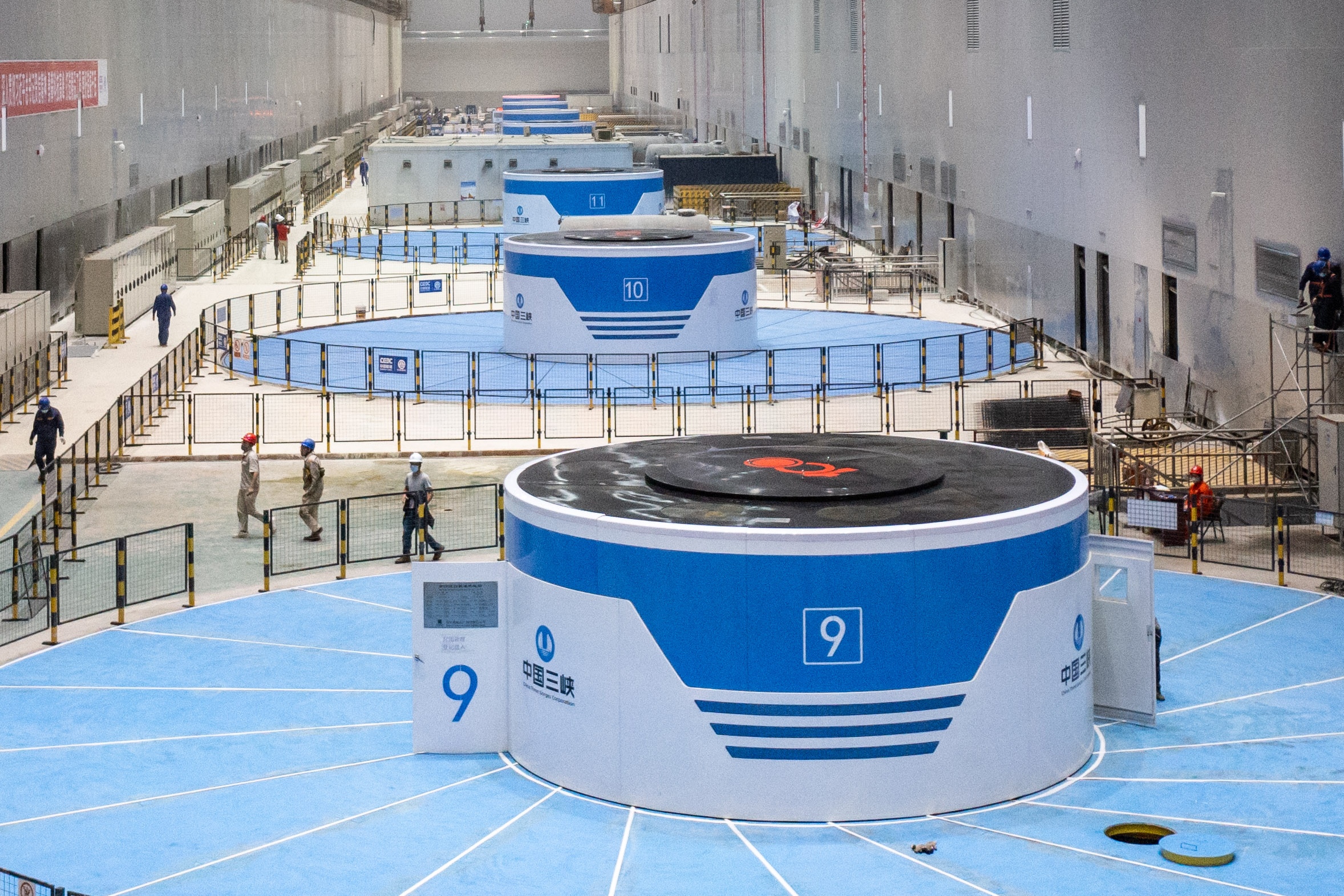 白鹤滩水电站右岸地下厂房内的9号机组总装工作完成。(新华社记者 胡超 摄)
