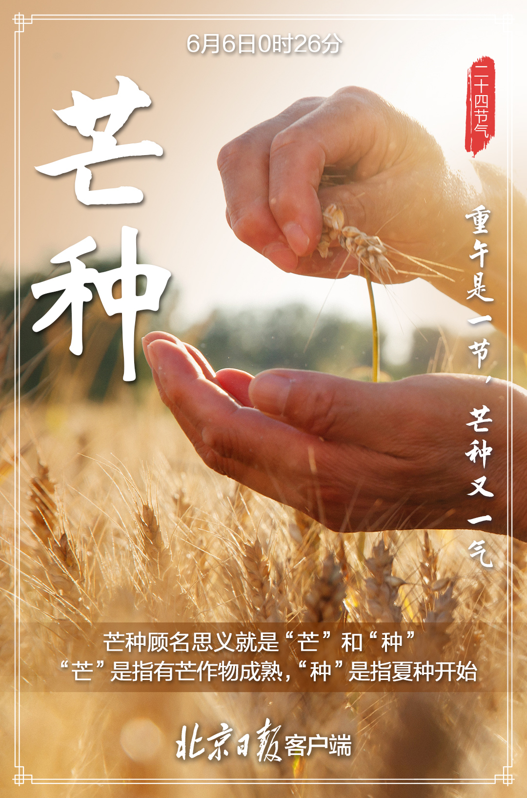 “芒种忙种,有收有种”,这一“收”一“种”,不仅道出了芒种节气的内涵,也道出了人生的真谛——人生大事,不过种和收;有种,才有收;种好,才能收好。