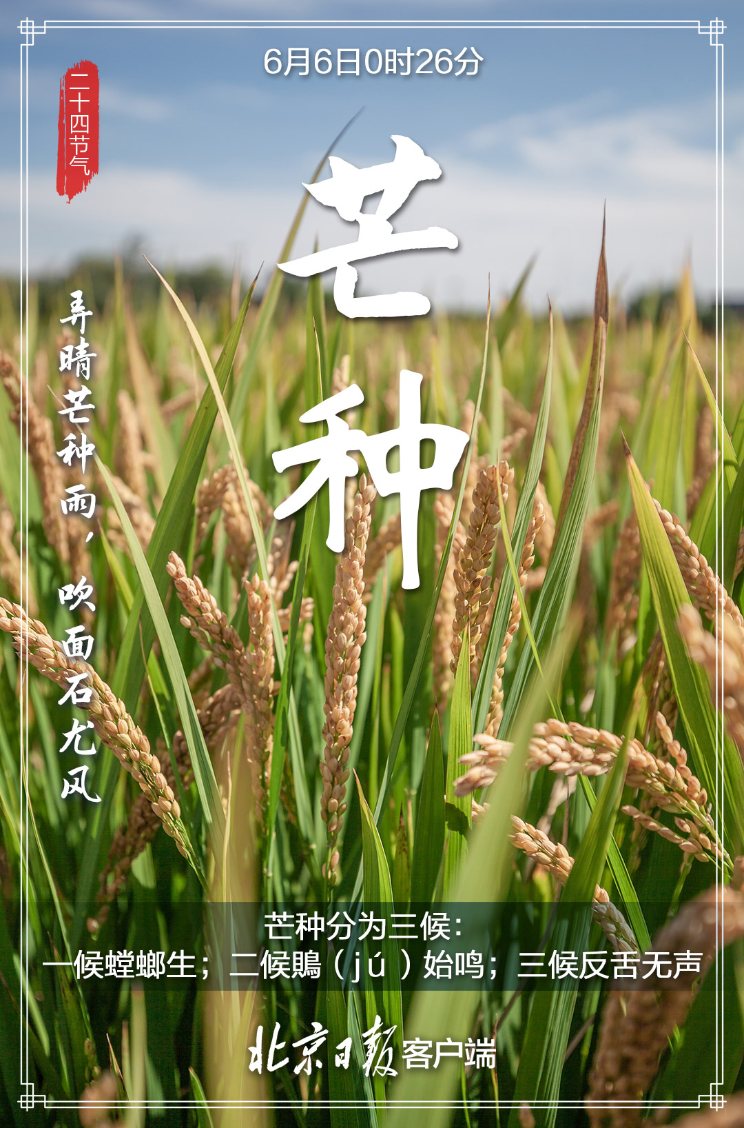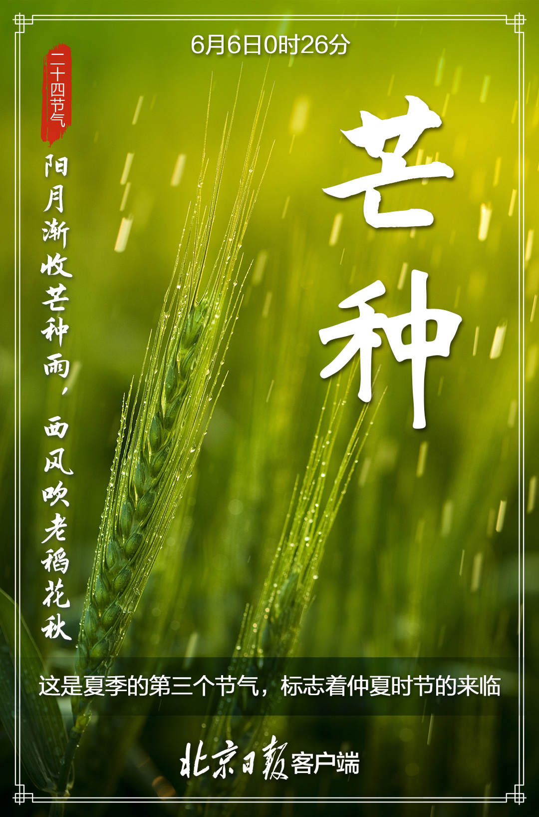 6月6日,迎来“芒种”节气,标志着一年仲夏的开始。每到此时,北方麦黄,江南秧绿。