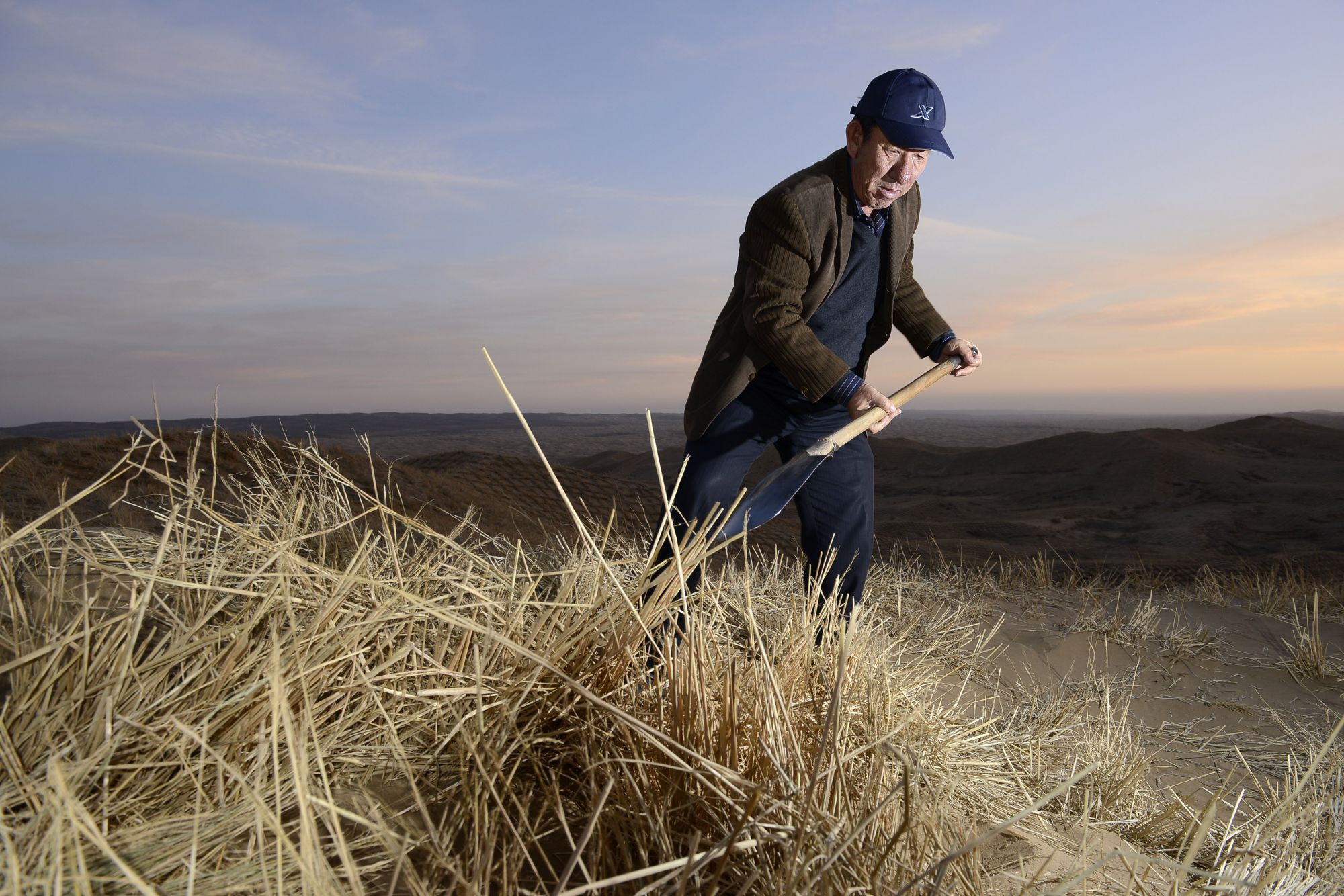 甘肃省武威市古浪县北部,腾格里沙漠南缘,是八步沙。这里曾饱受风沙肆虐之苦,沙漠中刮来的沙尘以每年7.5米的速度吞噬着庄稼和村庄。上世纪80年代,年富力强的他辞去工作,接替日渐年迈的父亲,走进了这片沙窝。