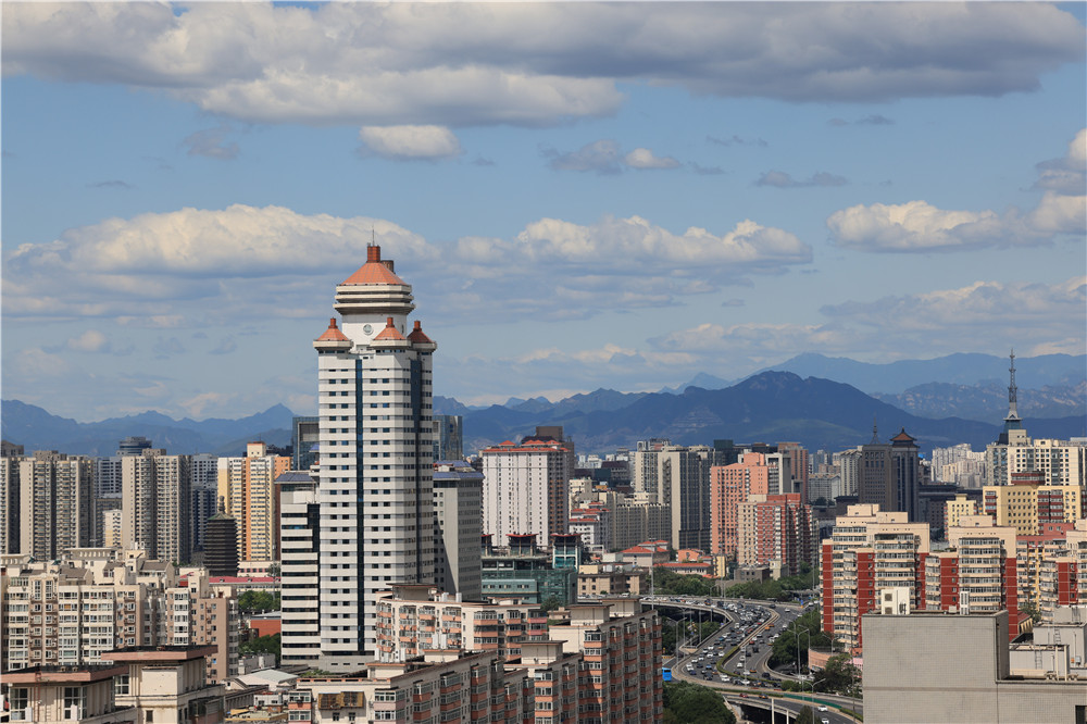 6月6日在宣武门拍摄的蓝天白云下的北京。新华社记者 邢广利 摄