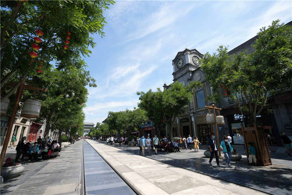 游客在北京前门大街参观游览(2021年6月6日摄)。新华社记者 鞠焕宗 摄