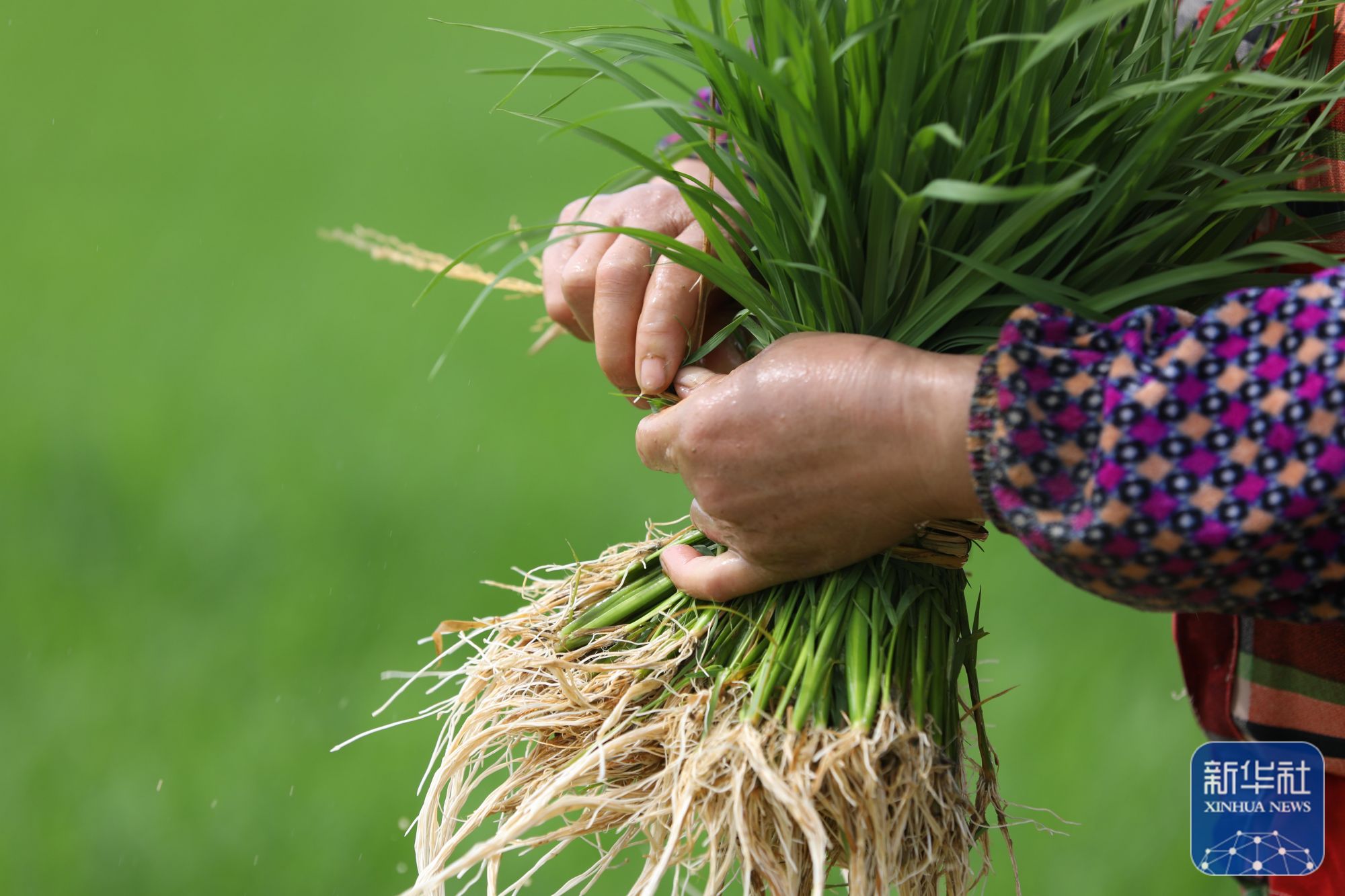 6月7日,村民在贵州省黔东南苗族侗族自治州岑巩县大有镇腊恰畈村起秧苗。新华社发(万再祥 摄)