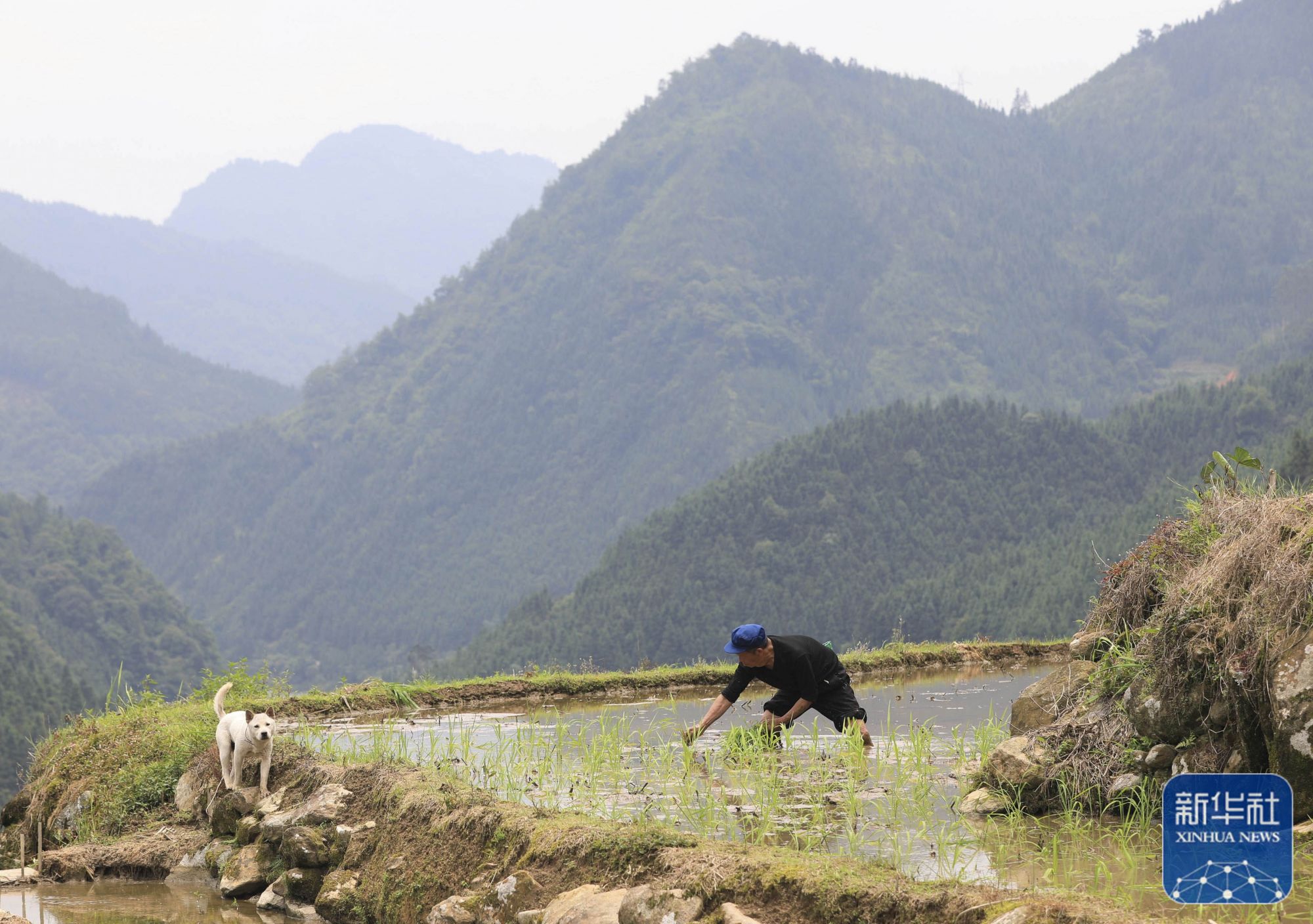 6月7日,村民在贵州省从江县宰别村的田间插秧。新华社发(罗京来 摄)