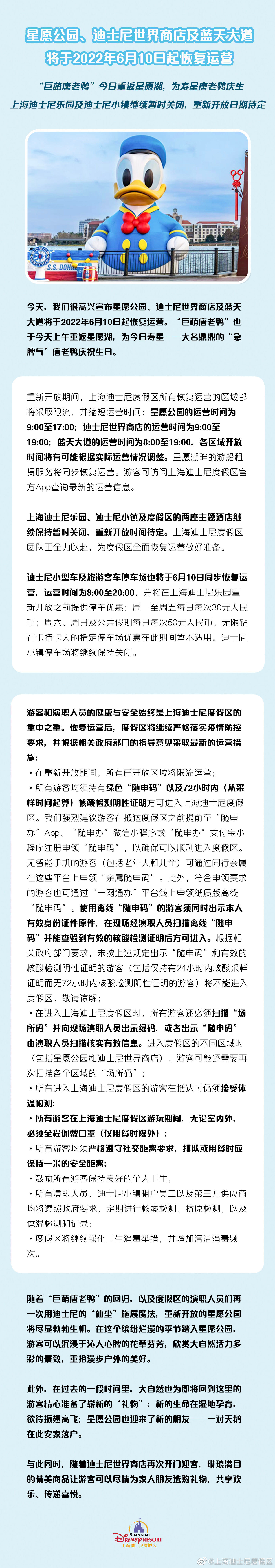 content="上海迪士尼度假区星愿公园、蓝天大道等6月10日起恢复运营&quo