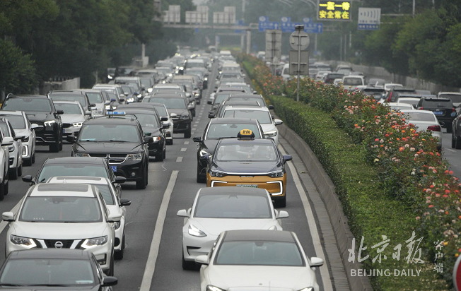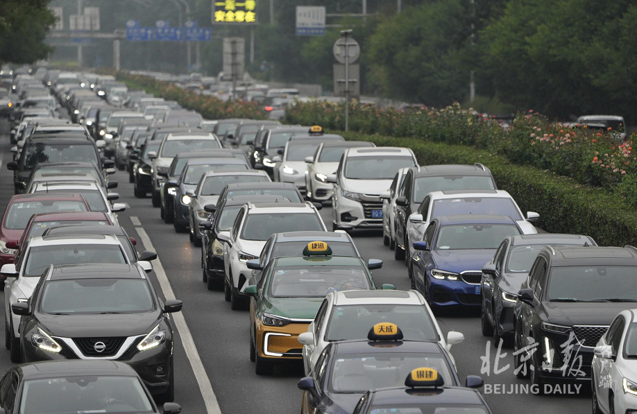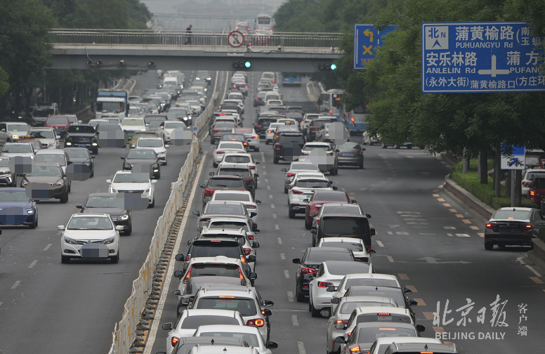 6月9日,丰台区转入常态化疫情防控,早高峰时段,南二环左安门桥区外环方向、刘家窑桥向北车行方向等路段车流滚滚。