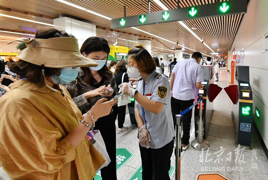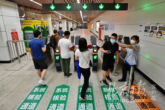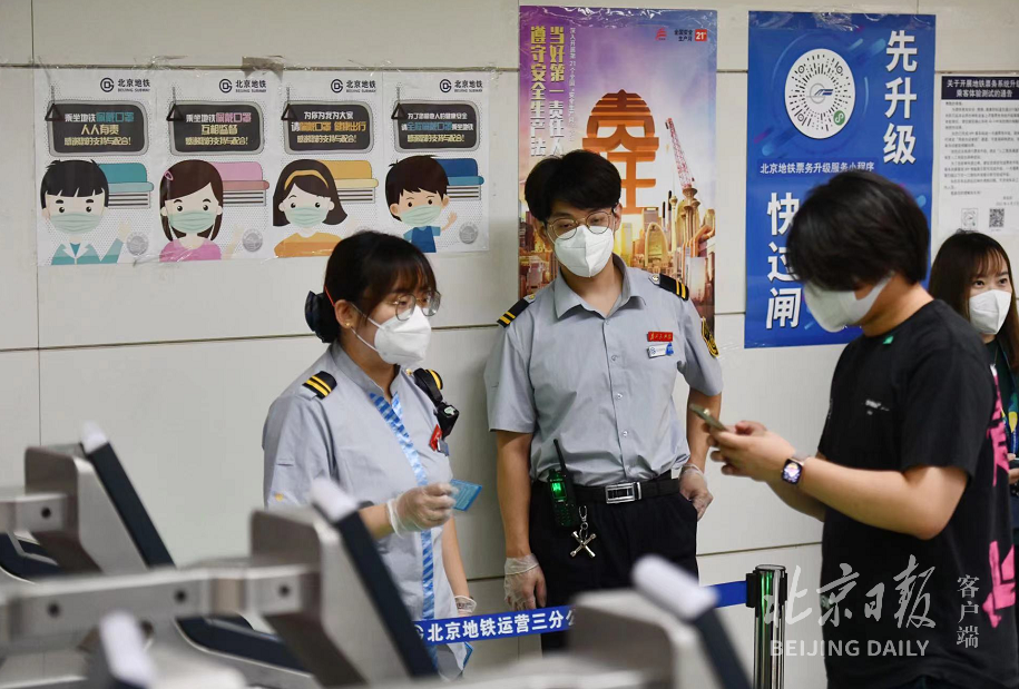 今天起,北京地铁全网正式启动自动核验乘客健康码。记者注意到,由于不少周边居民也是第一天搭乘地铁上班,一小部分乘客尚未完成一卡通的升级,被拦在了闸机外。“因为是第一天恢复运营,十里河站没有升级的乘客比其他站多。车站在每一组进站闸机至少安排两名工作人员进行指导,协助乘客完成升级。”成寿寺站务中心副主任赵轶群介绍,如果乘客遇到任何困难,都可以向站内工作人员寻求帮助。