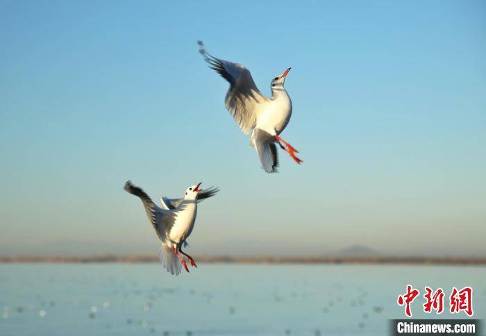 红嘴鸥在空中起舞。 庞秋霞 摄