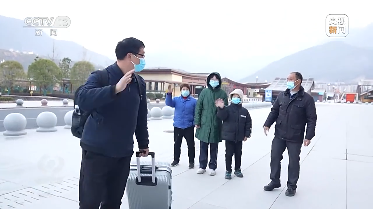 正月初八一大早,湖北兴山县的邹远飞一家人到今年新开通的兴山高铁站,送邹远飞到广东去。
